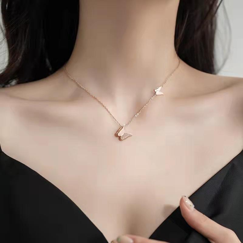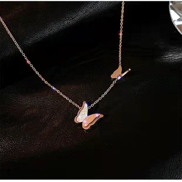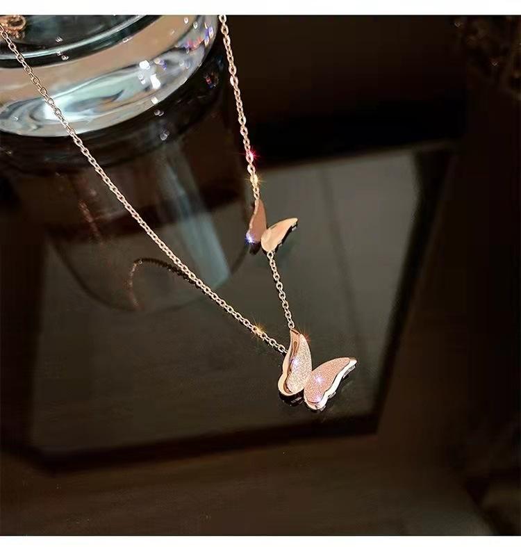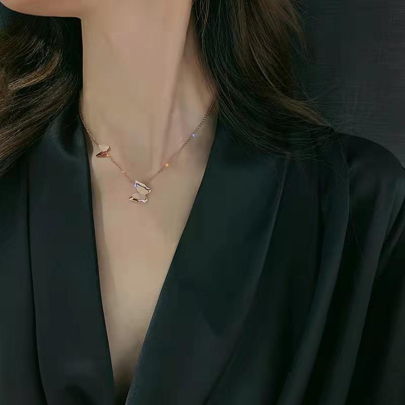 Colar de Borboleta de Aço Titânio Feminino Nicho Design Sentido Internet Popular Simples Elegante Clavícula Cadeia Estilo Frio Retro Luz Luxo Colar Cadeia