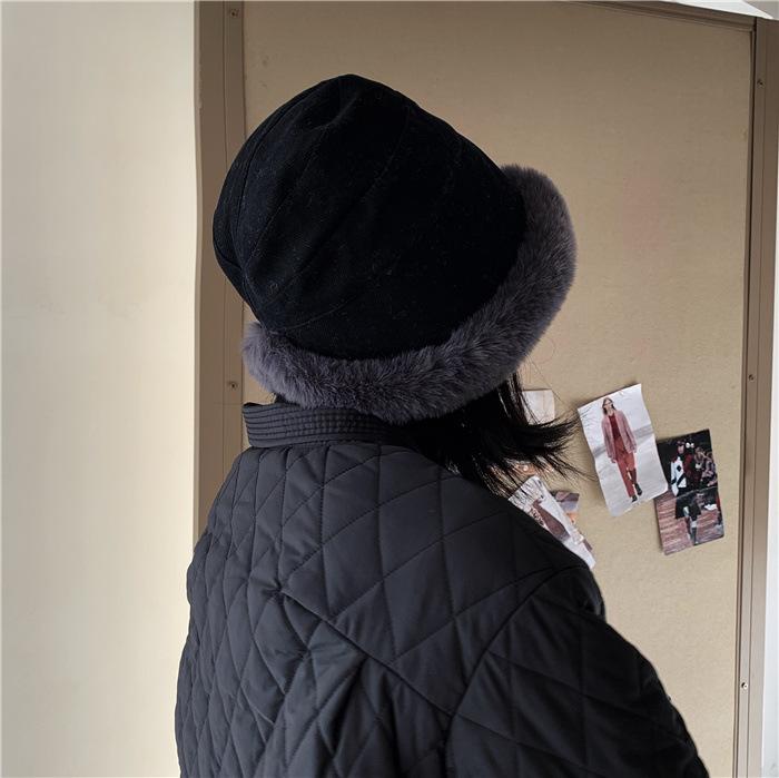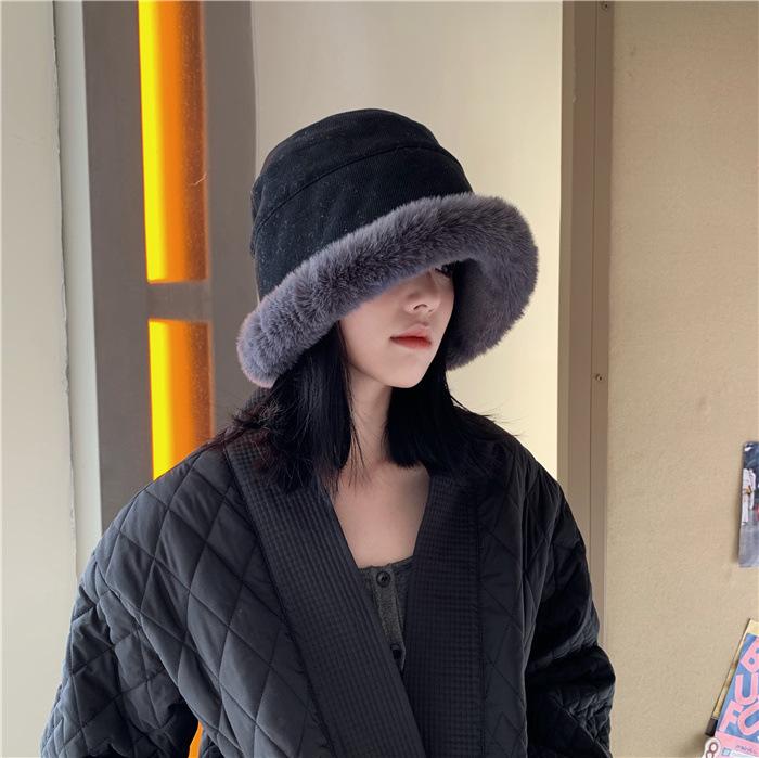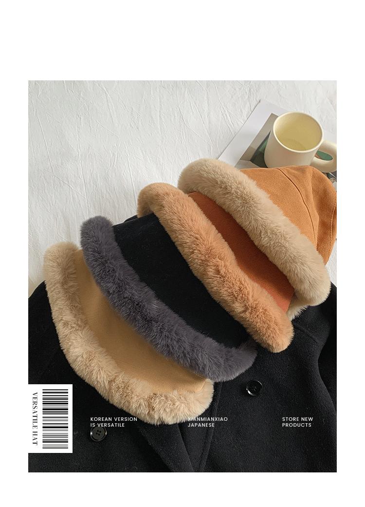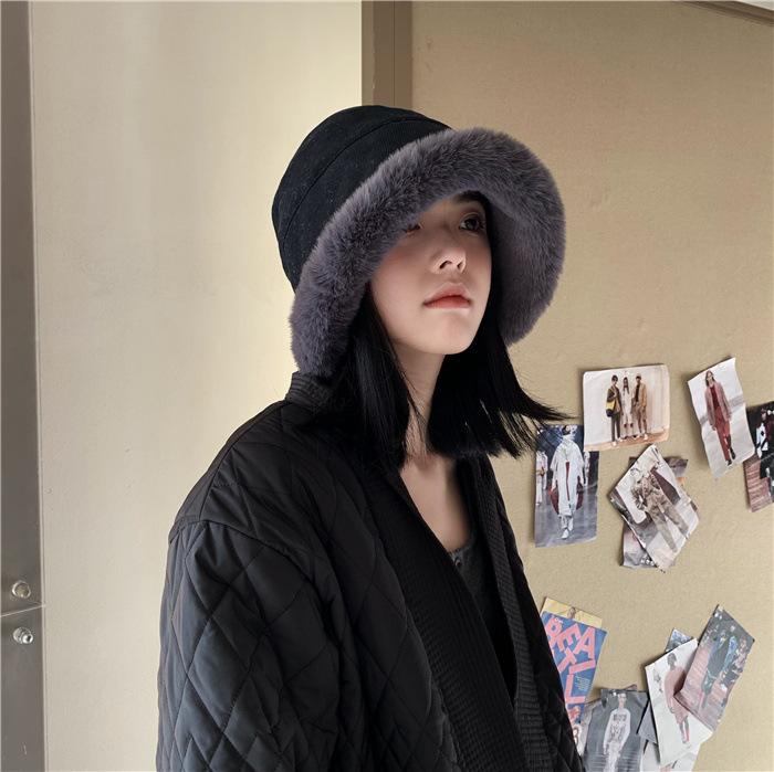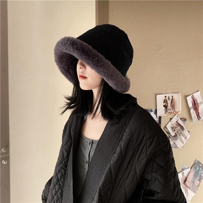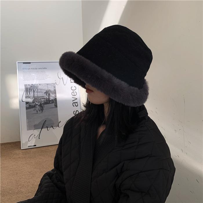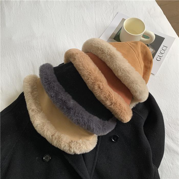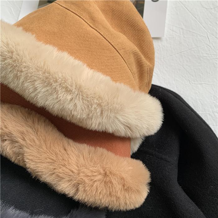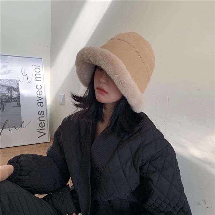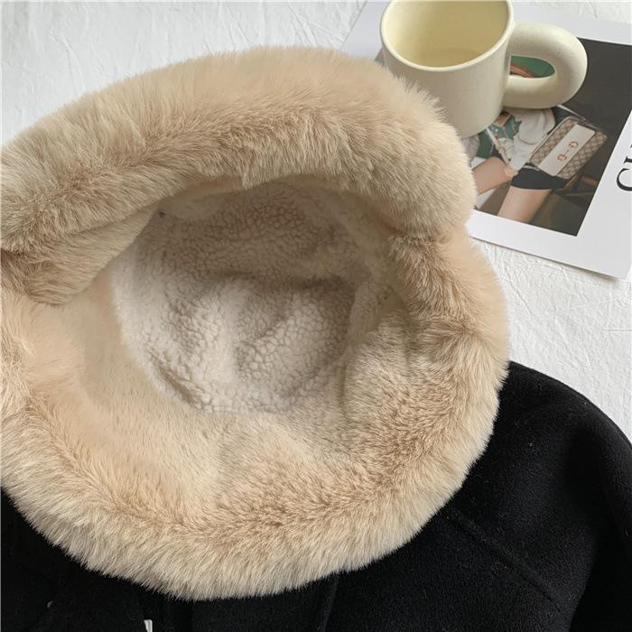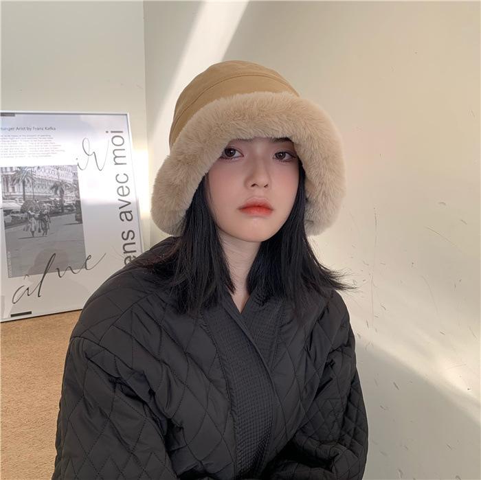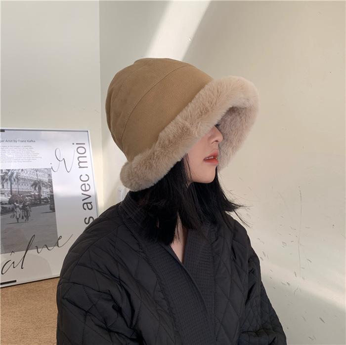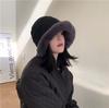 Chapéu de pescador de pelúcia japonês feminino outono e inverno estilo coreano ins moda todos combinando grosso quente proteção auricular rosto-olhando pequeno chapéu de bacia