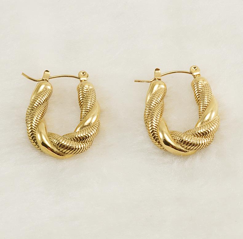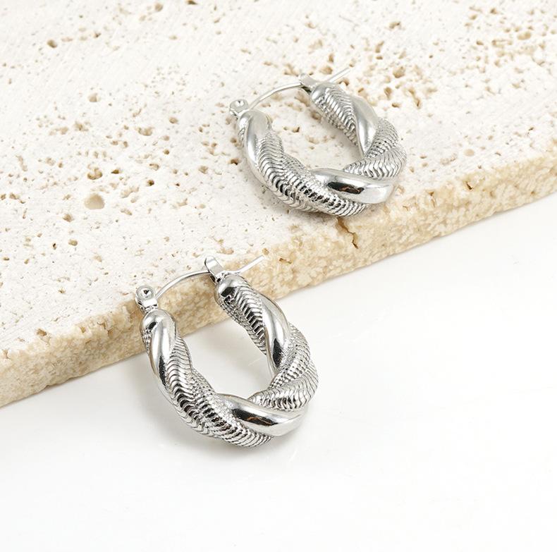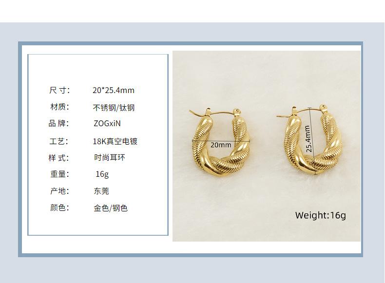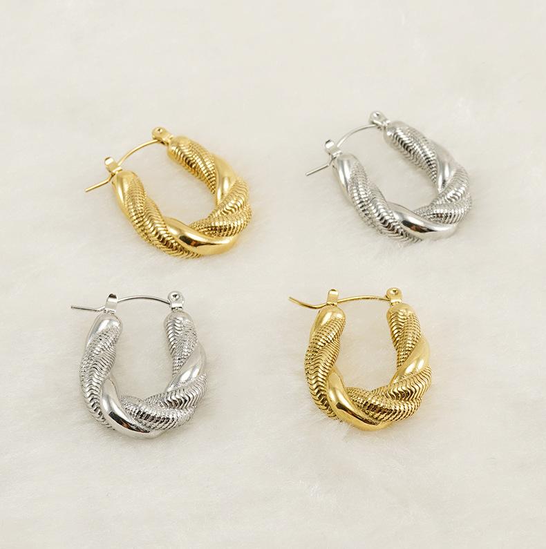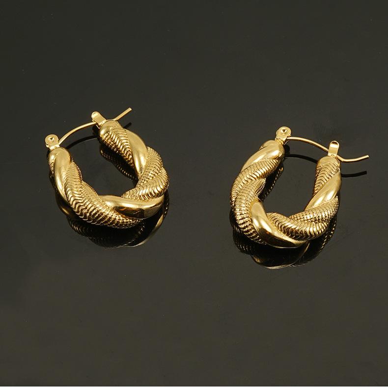 Brincos de torção retrô de moda europeia e americana transfronteiriça para mulheres em aço inoxidável 18K brincos irregulares em forma de U atacado