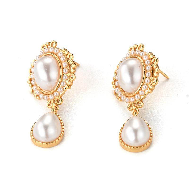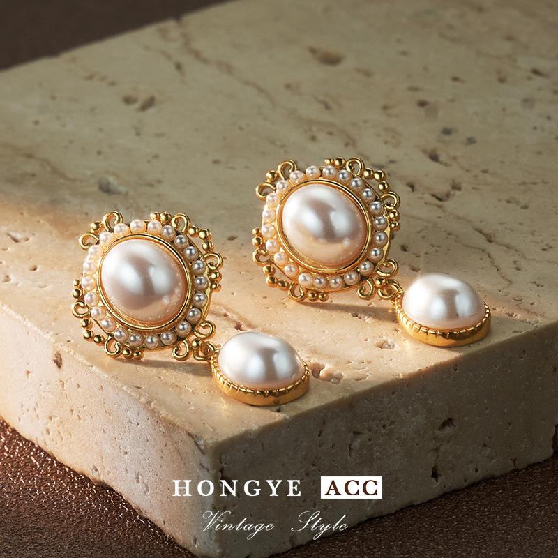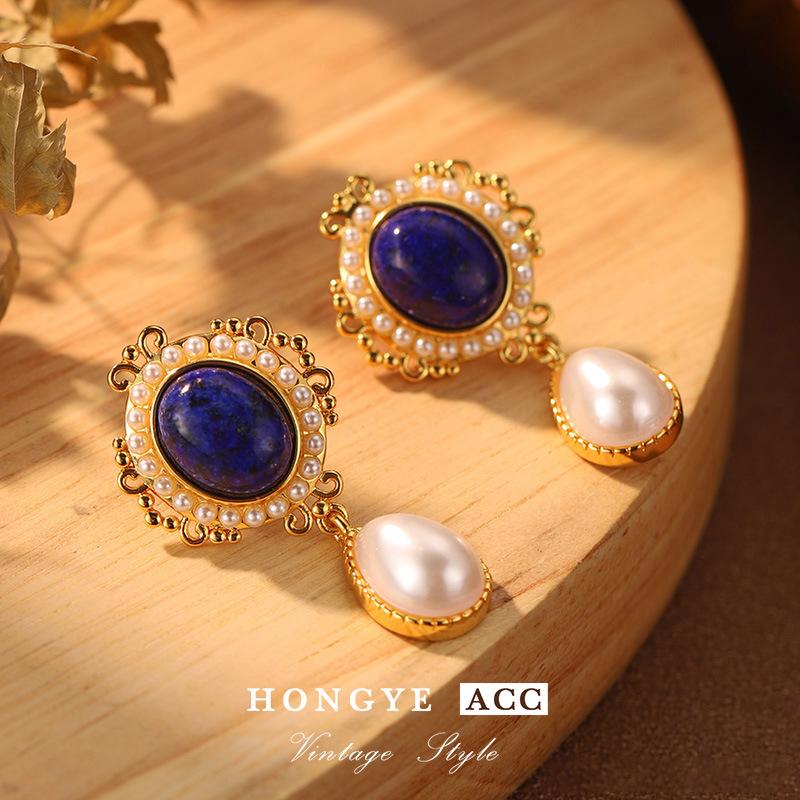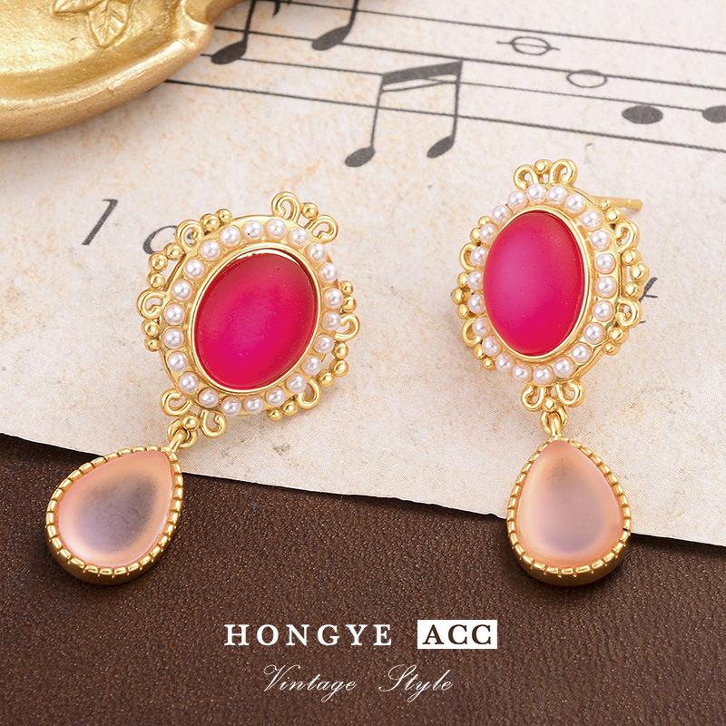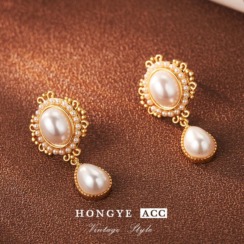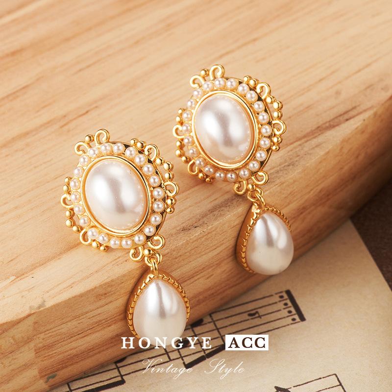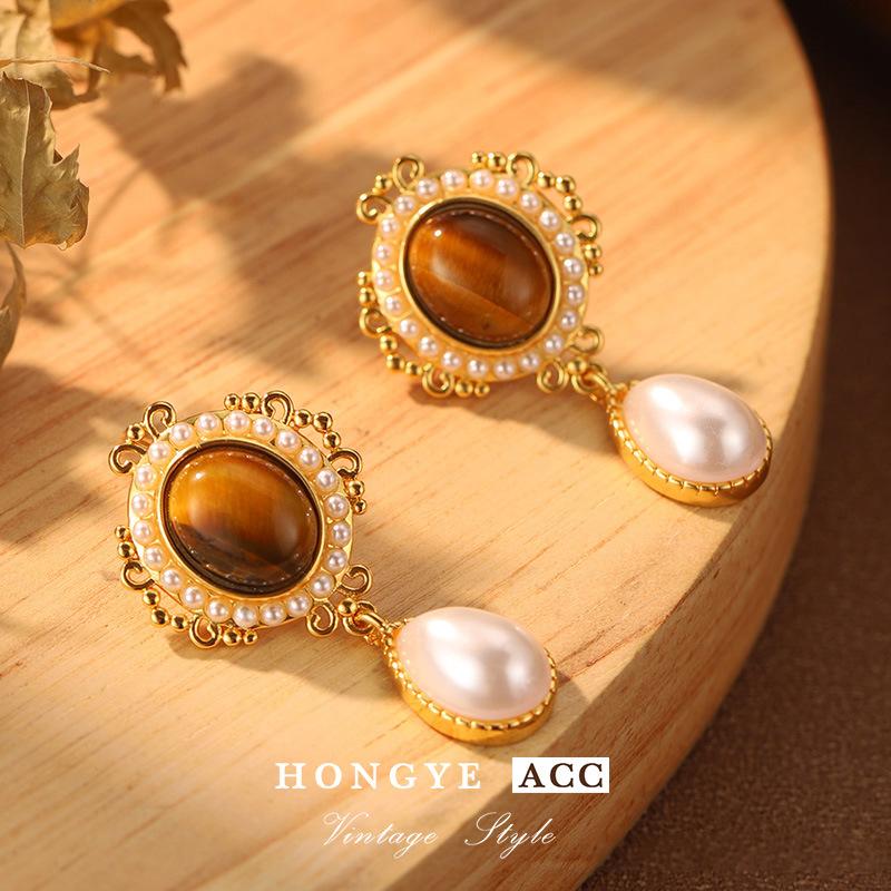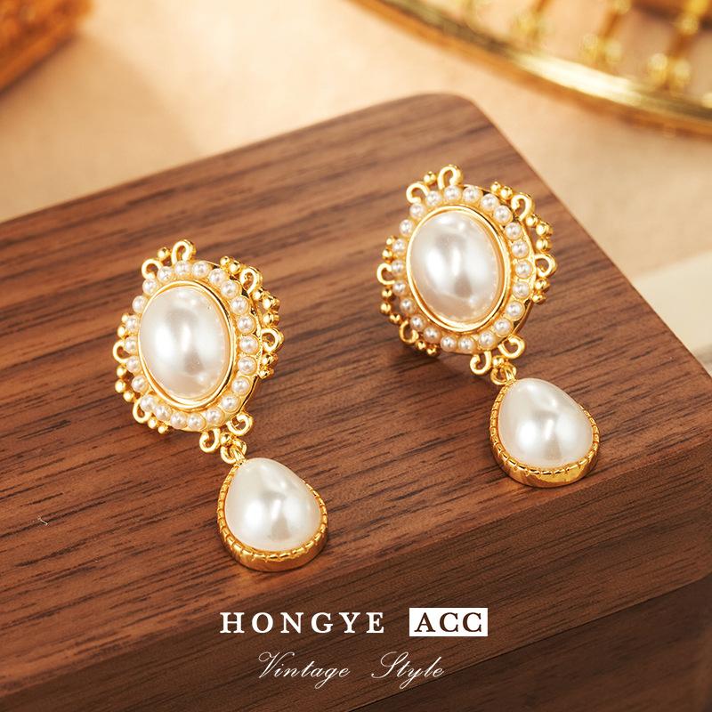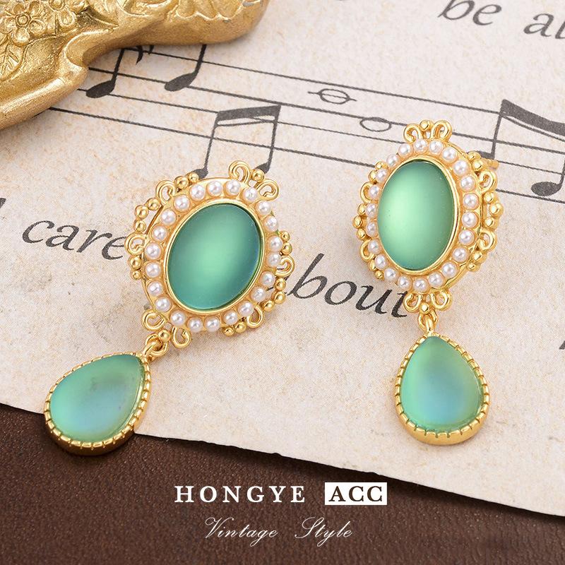 Meio Antigo Vintage Jóias Retro Tribunal Estilo Celebridade Pérola Gotas de Água Estilo Ins Brincos de Pedra Natural Brincos de Emagrecimento