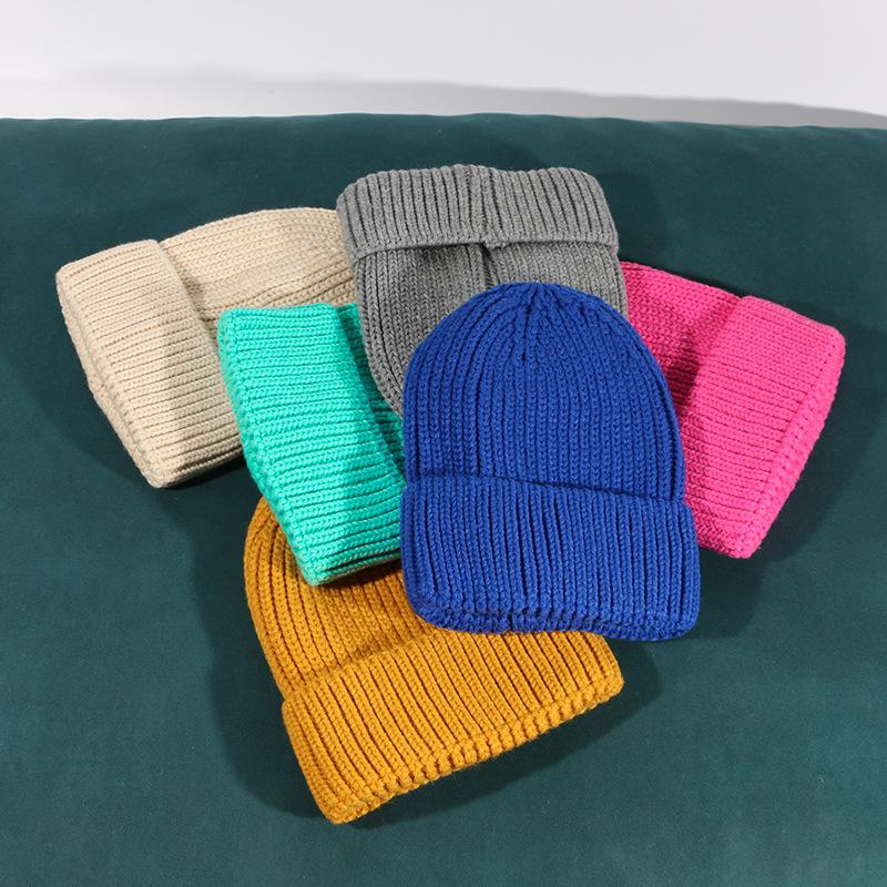 Chapéu Feminino Outono e Inverno Estilo Coreano All-match Chapéu de Malha Logotipo Bordado Personalizado Chapéu de Lã Cor Doce Chapéu Quente Frio Masculino Moda