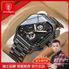 Relógio Masculino Multifuncional à Prova d'Água Moda Pulseira de Aço Relógio de Pulso a Quartzo