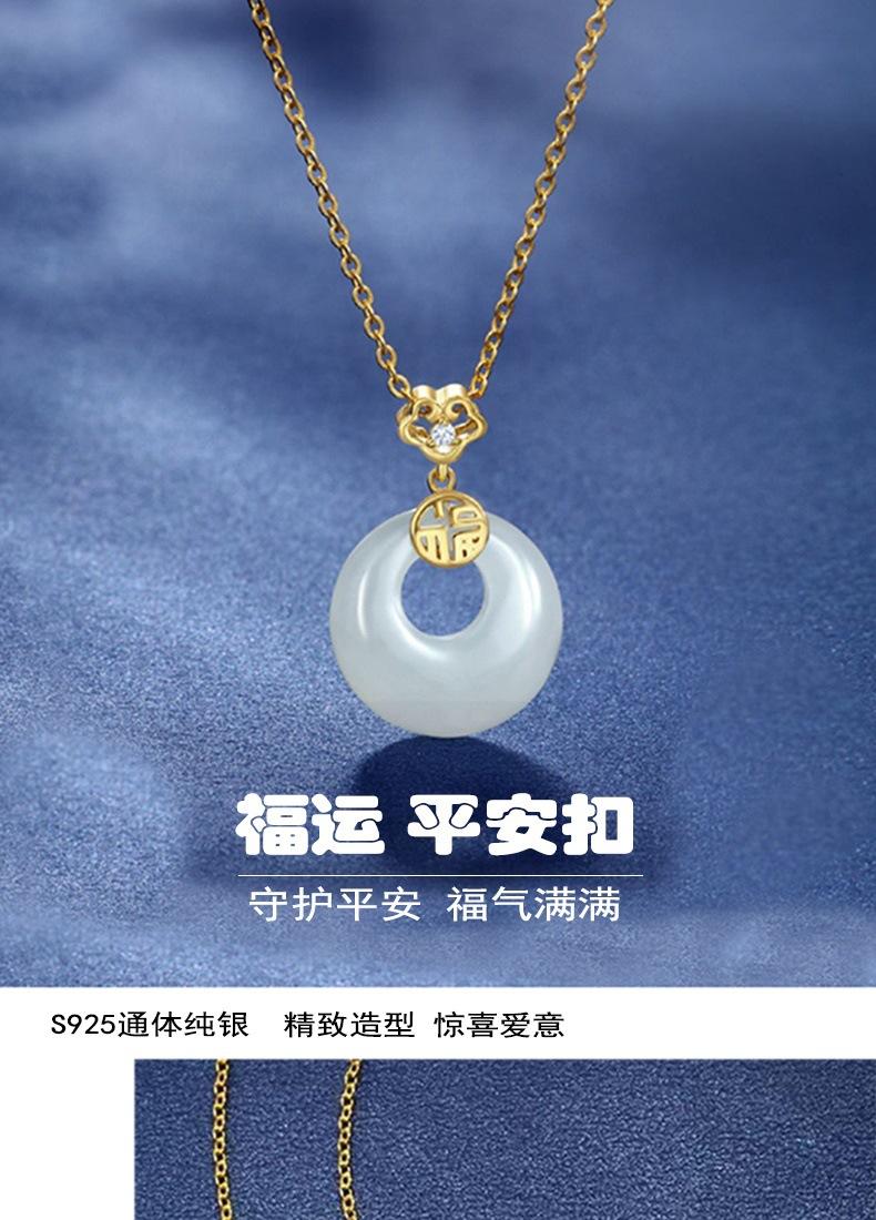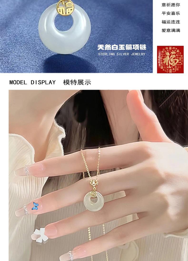 Compre Colar de calcedônia branca natural S925 com pingente feminino, design de nicho, Sense Advanced Sense Light, luxo, moda, corrente de clavícula de jade Hetian no atacado no Joom.pro