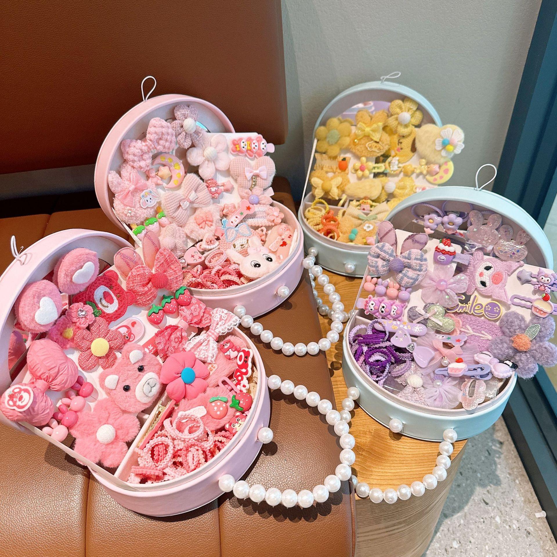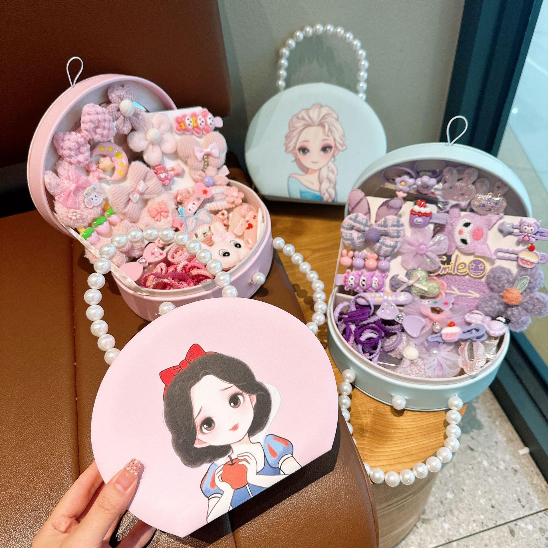 Acessórios de cabelo para crianças terno caixa de presente menina presente de aniversário menina princesa cocar bonito grampo de cabelo elástico caixa de jóias