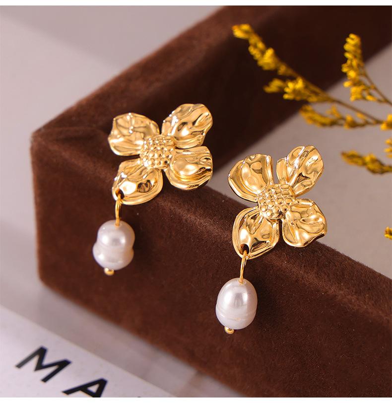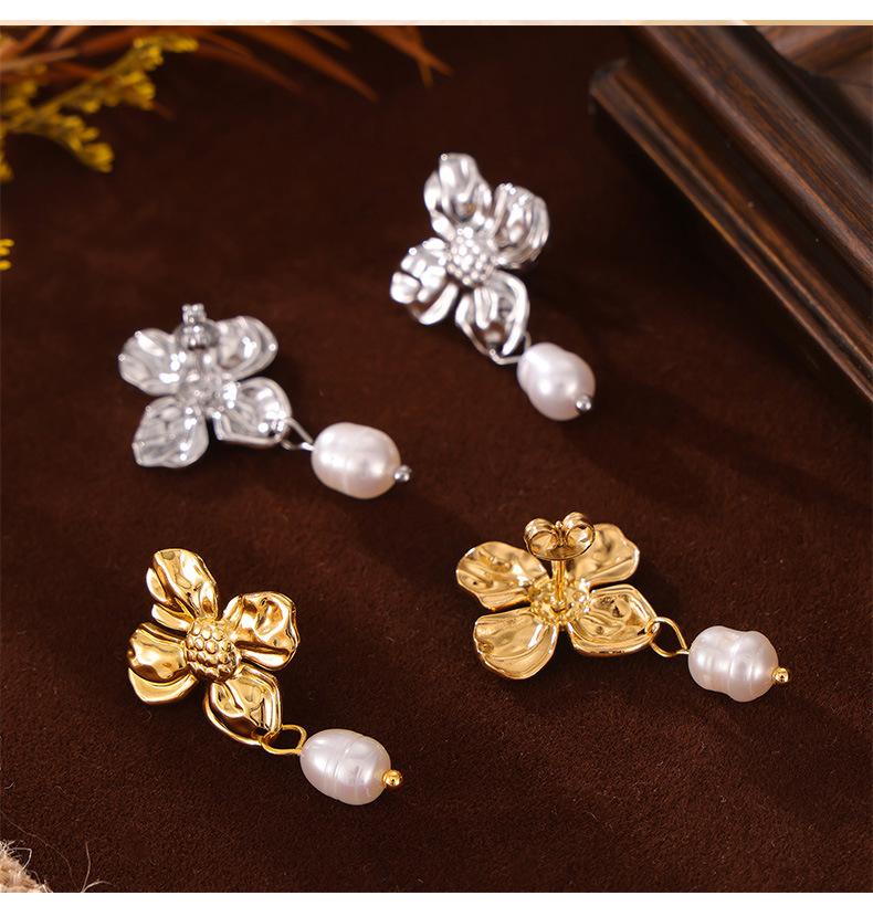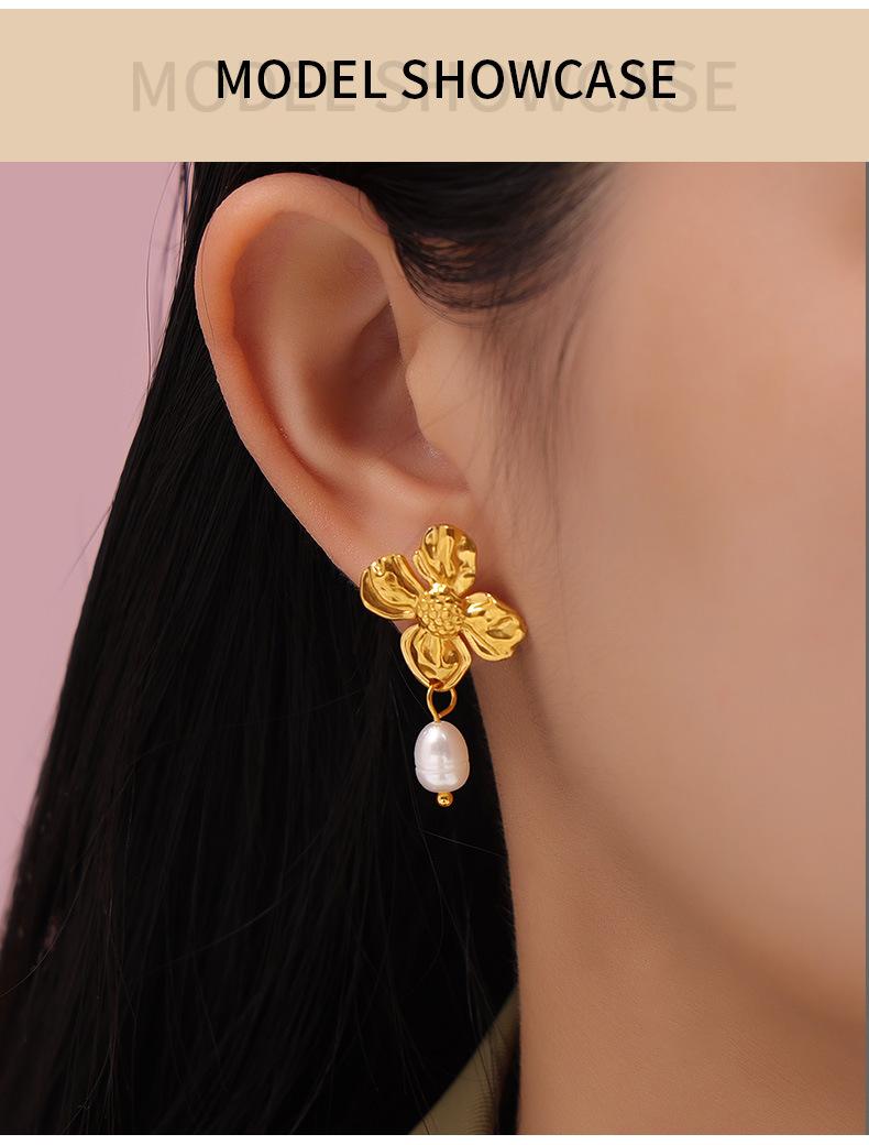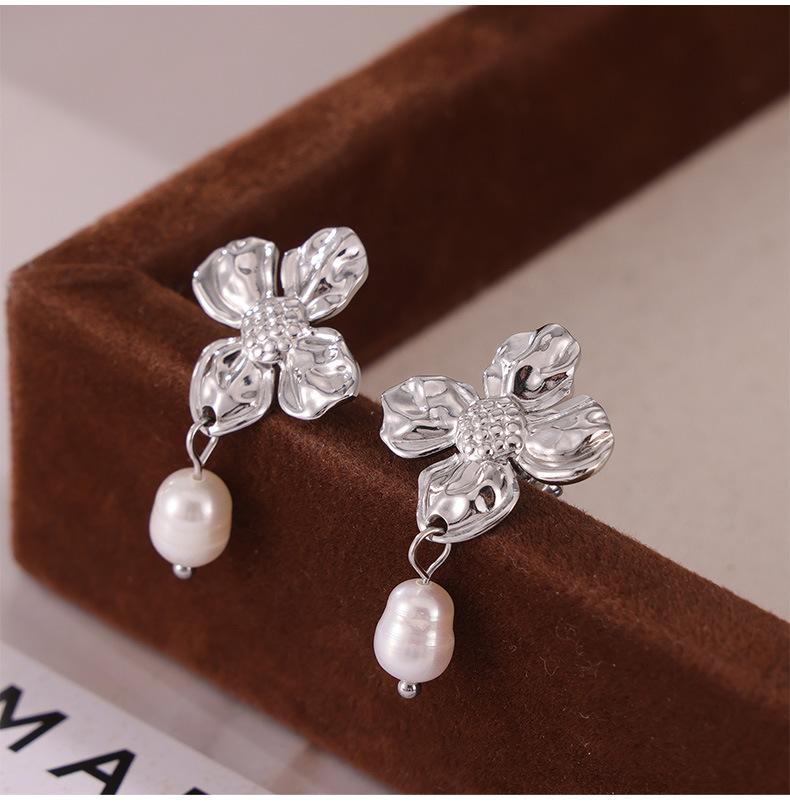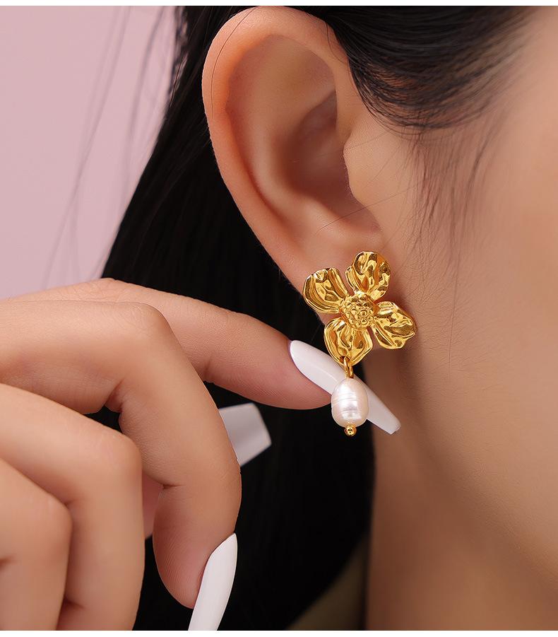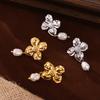 Hepburn Elegante Elegante Pérola de Água Doce Pingente Brincos Feminino Nicho Textura Flor Design Elegante Elegante Brincos