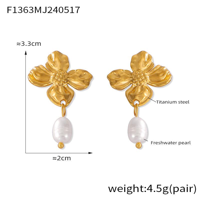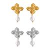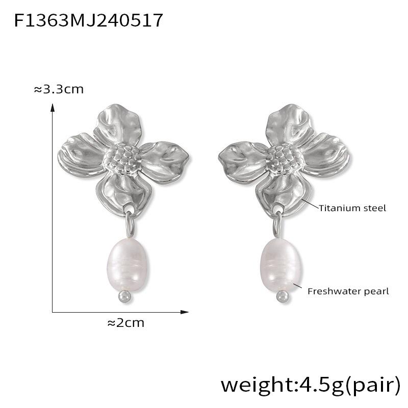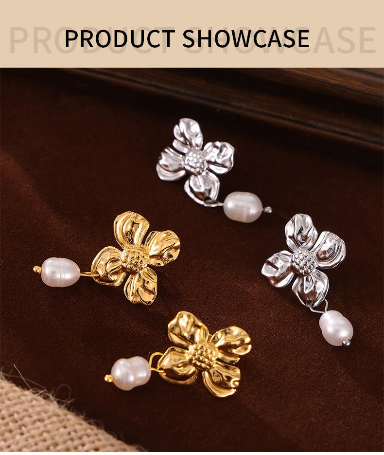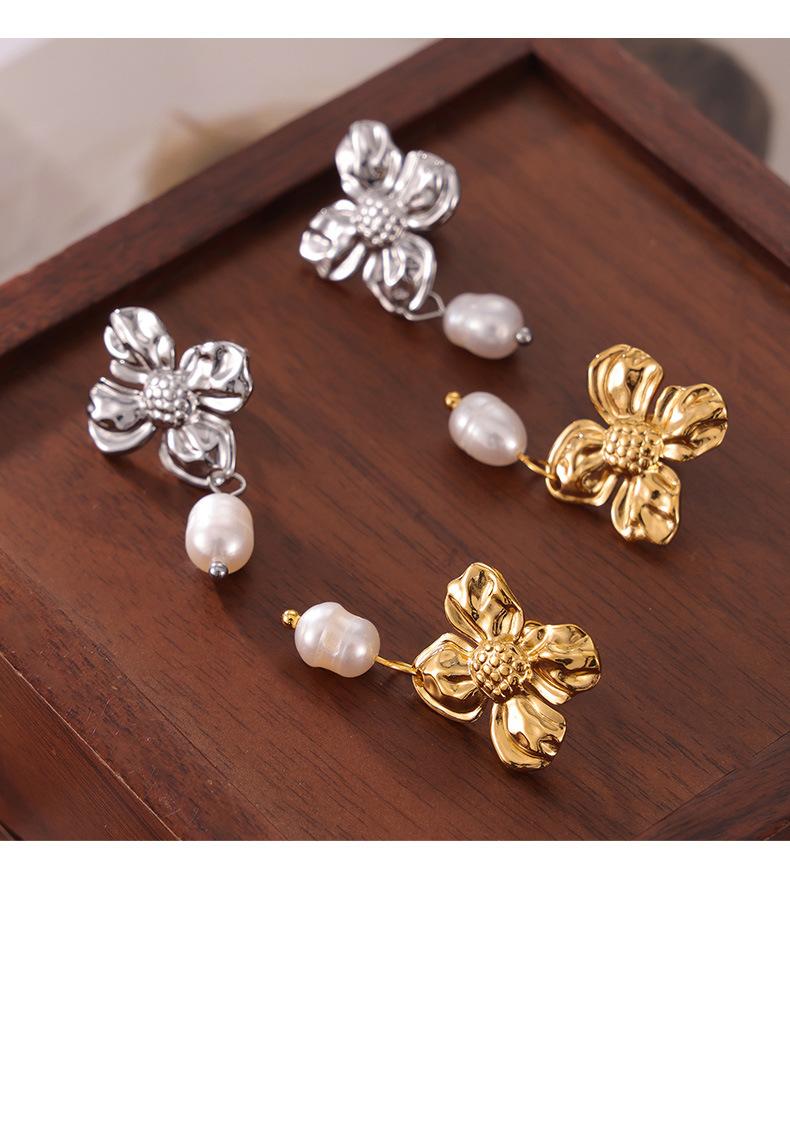 Hepburn Elegante Elegante Pérola de Água Doce Pingente Brincos Feminino Nicho Textura Flor Design Elegante Elegante Brincos
