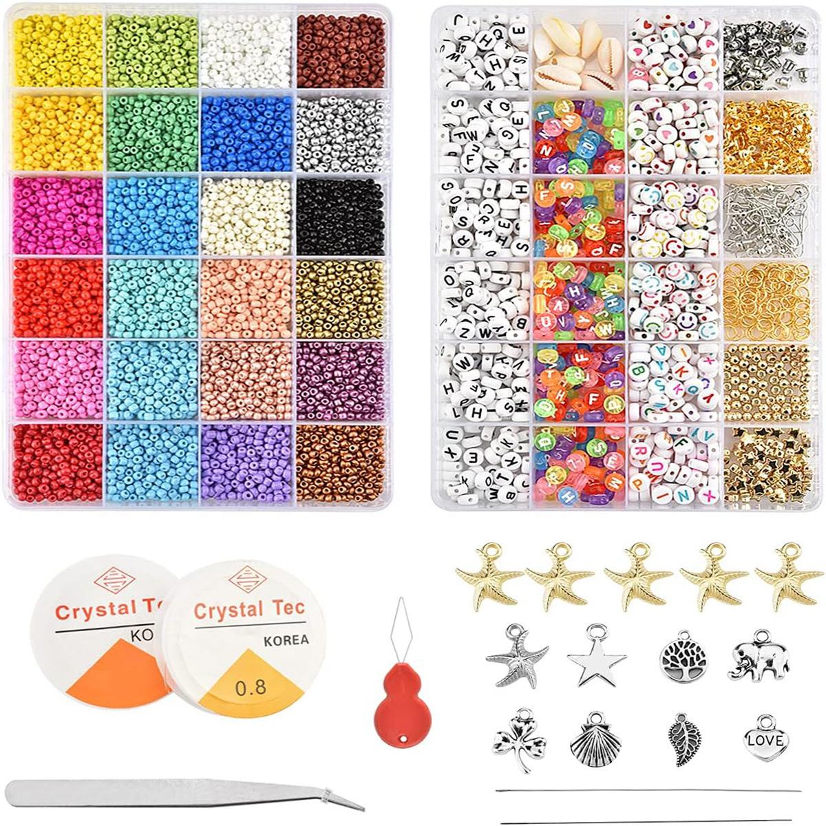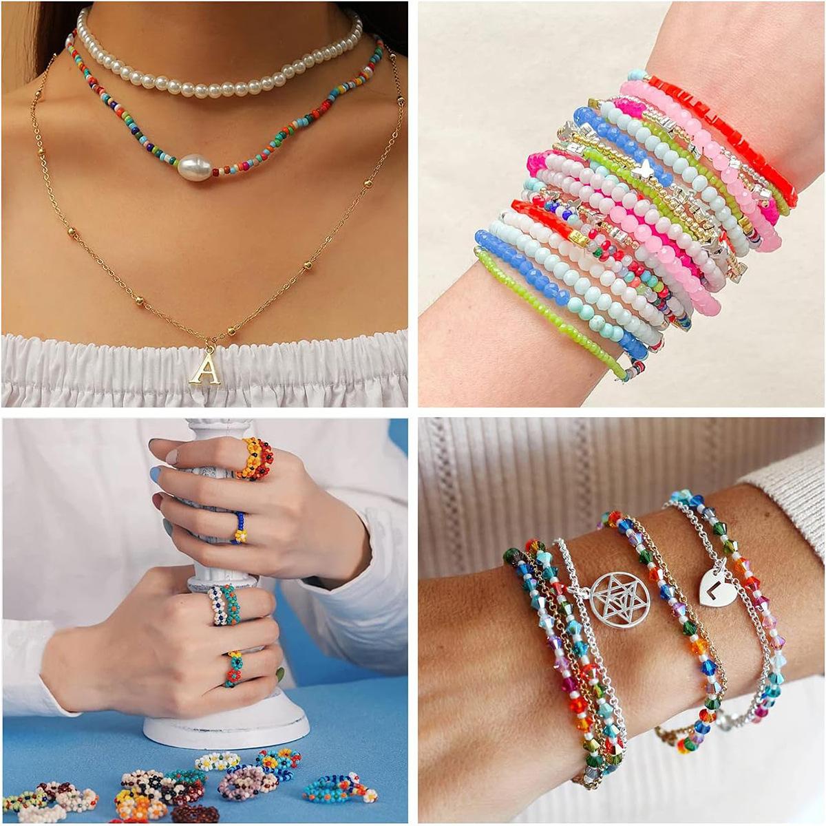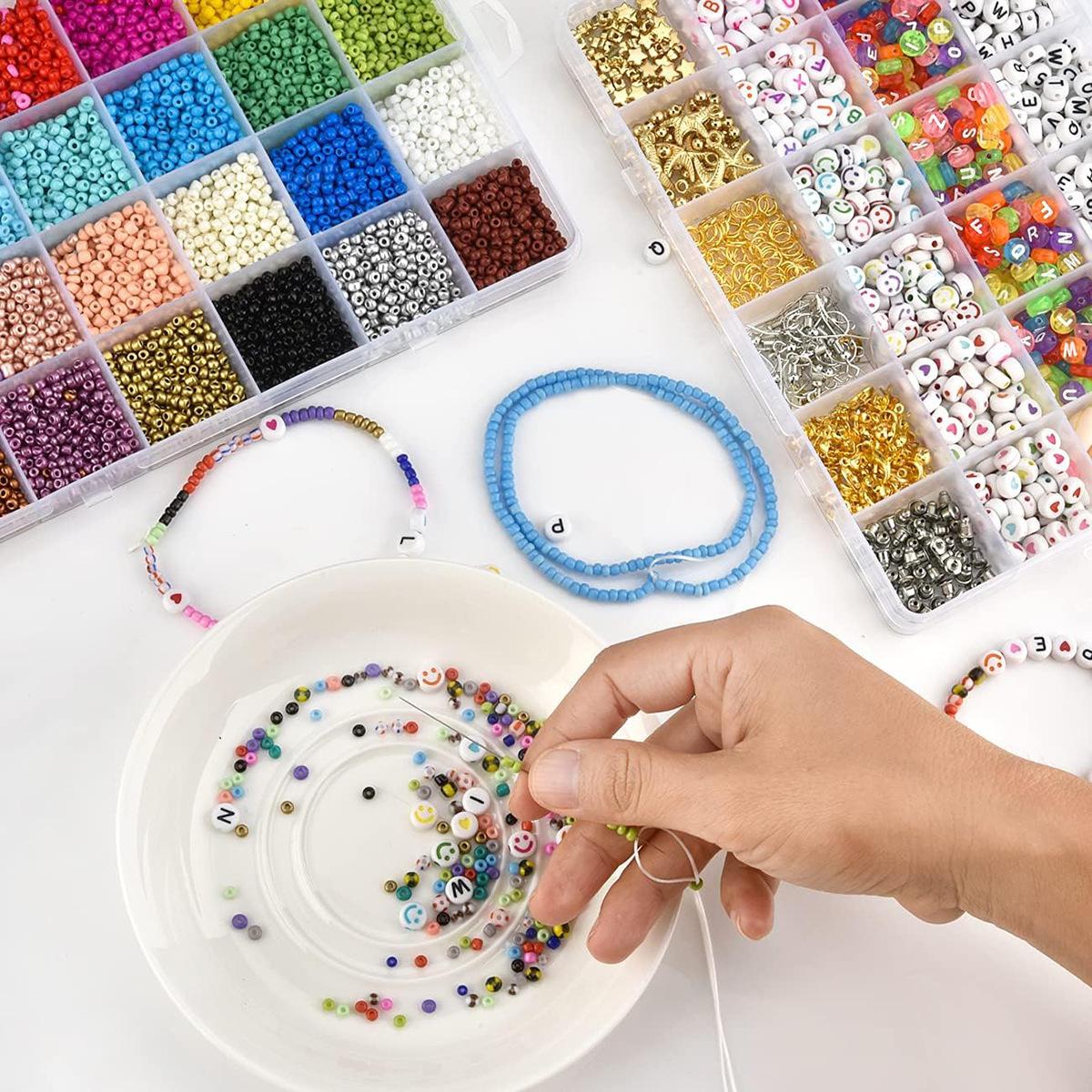 Cross-border venda quente DIY jóias terno 24-cor contas de vidro contas de arroz contas coloridas caixa pingente de linha elástica