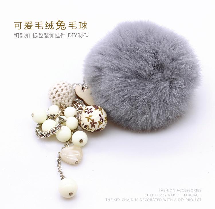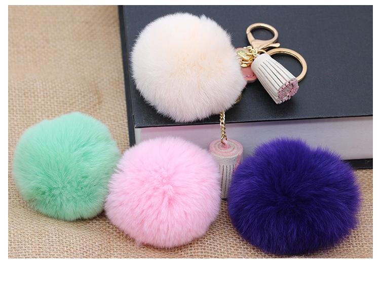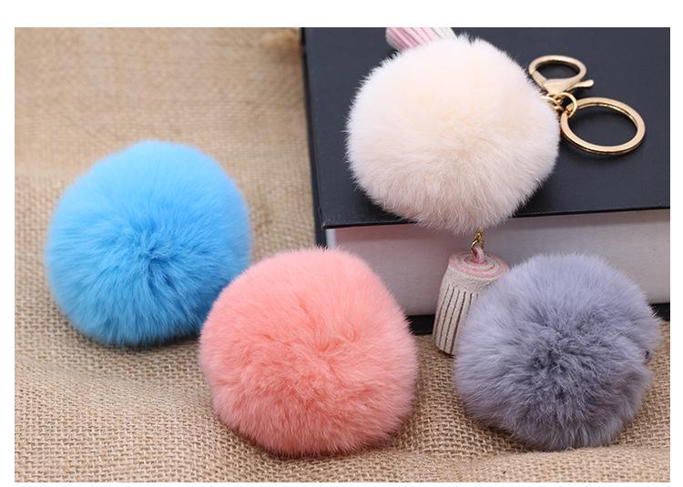 Grande bola de pelo de coelho Rex de 8 cm, bola de pelo de coelho real, chaveiro de joias para homens e mulheres, suporte para celular, bola de pelo