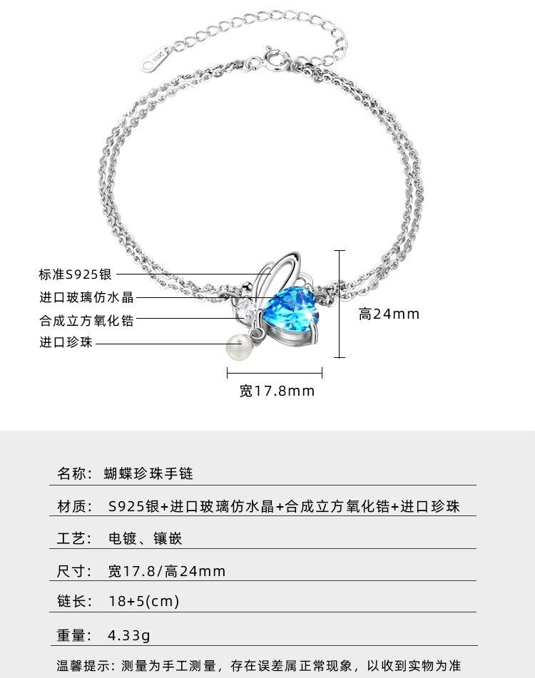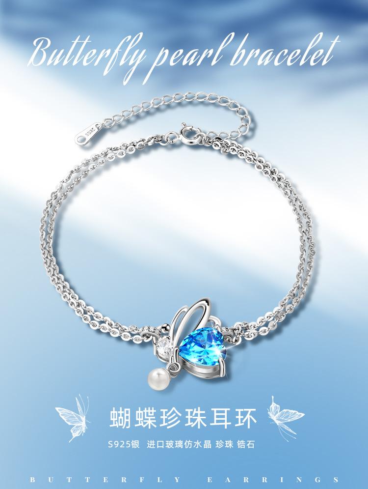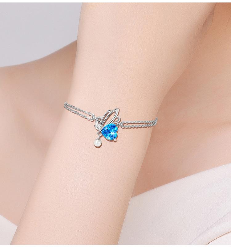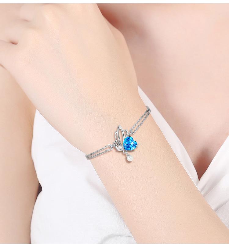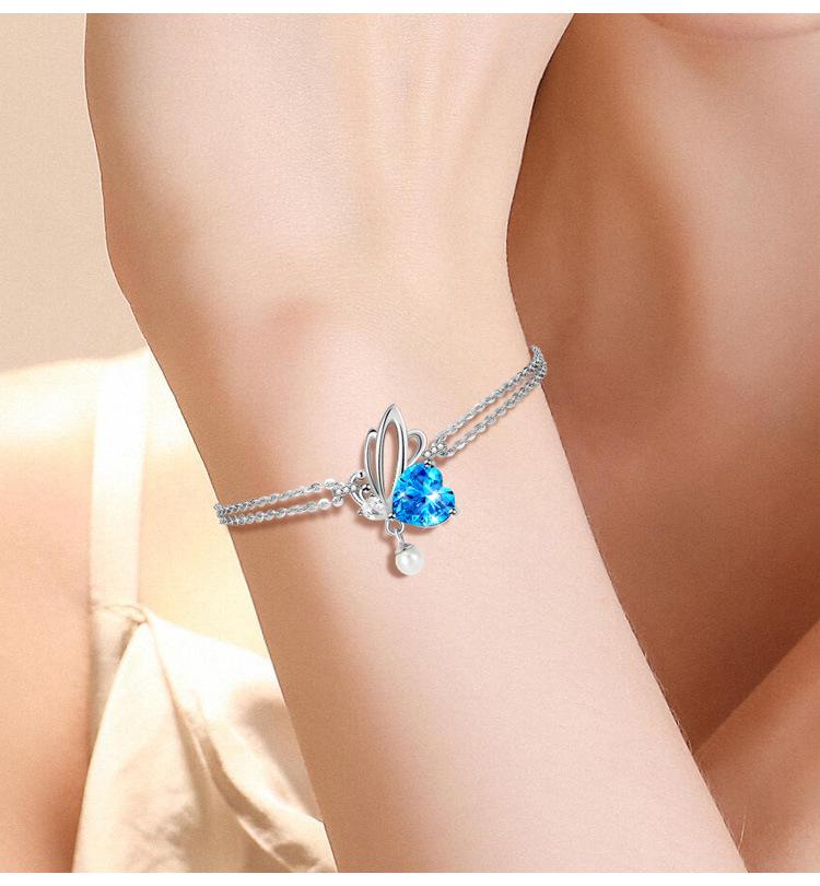 Compre Pulseira de Pérolas Borboleta Transfronteiriça para Mulheres Prata de Lei S925 Luxo Acessível Diamante High-End Coração Camadas Duplas Empilhadas Pulseira no atacado no Joom.pro
