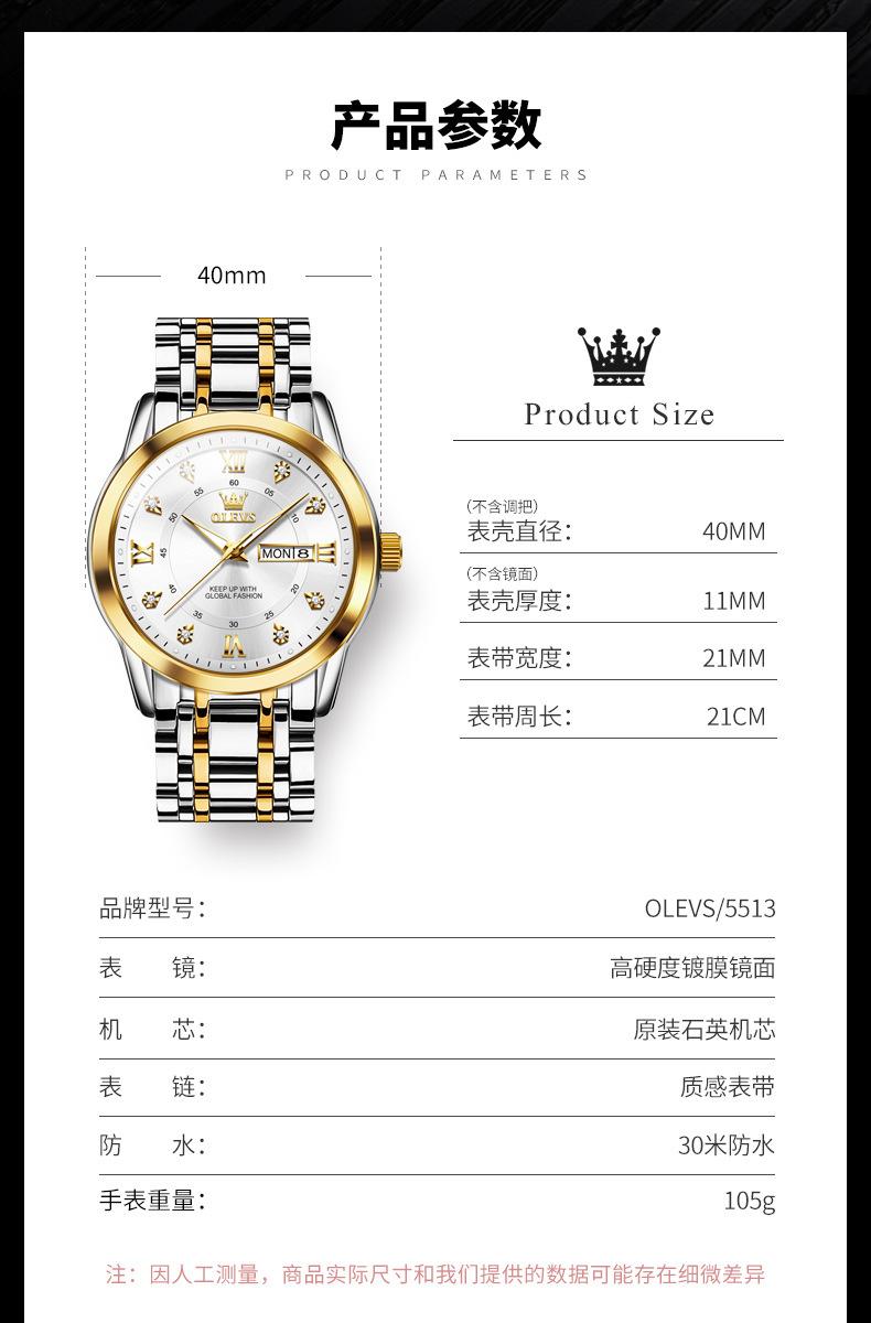 Relógios da marca Oli Shi relógios de quartzo por atacado comércio exterior calendário duplo de negócios luminosos relógios infantis relógios masculinos