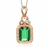 Venda quente pingente de esmeralda banhado a ouro rosa colorido de pedras preciosas verde turmalina cor retangular diamante pingente colar de cristal