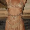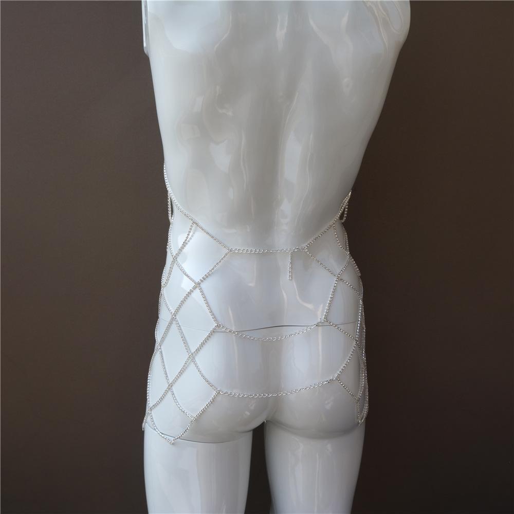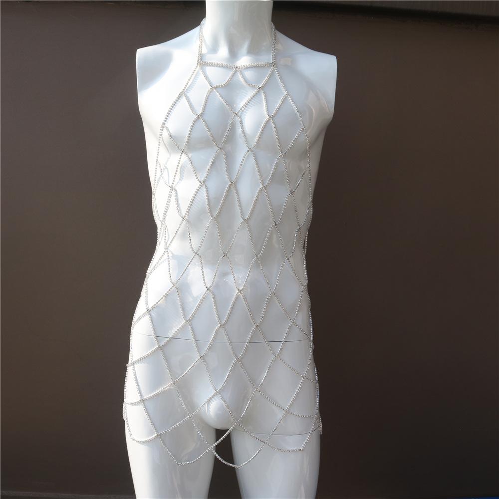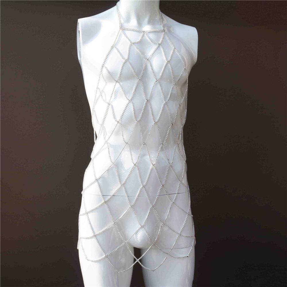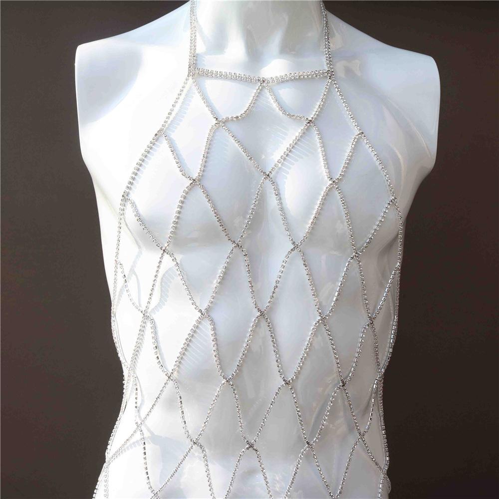Europeu e americano Hot Mesh Rhinestone Dress body chain Sexy Beach Bikini Chest chain European Female body chain