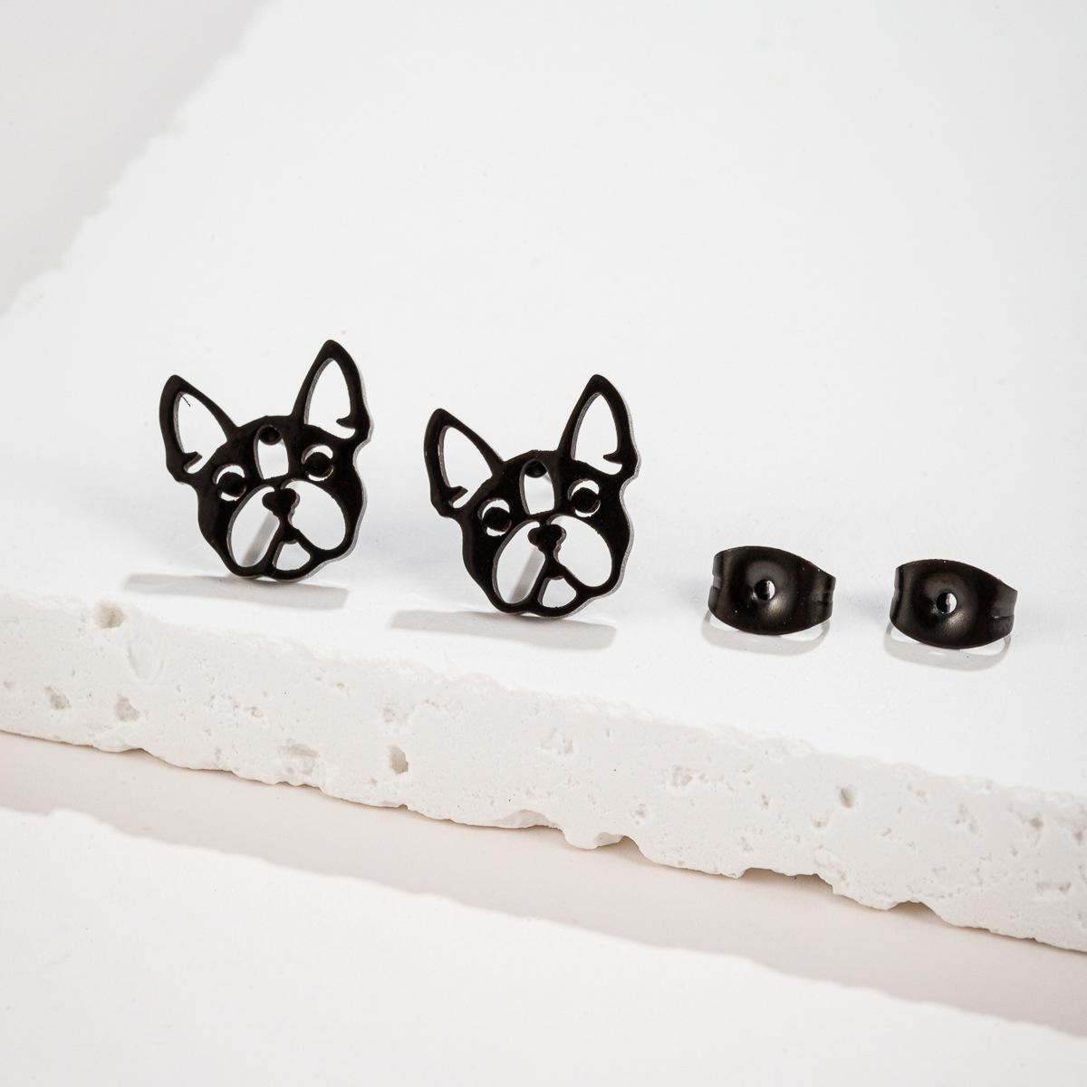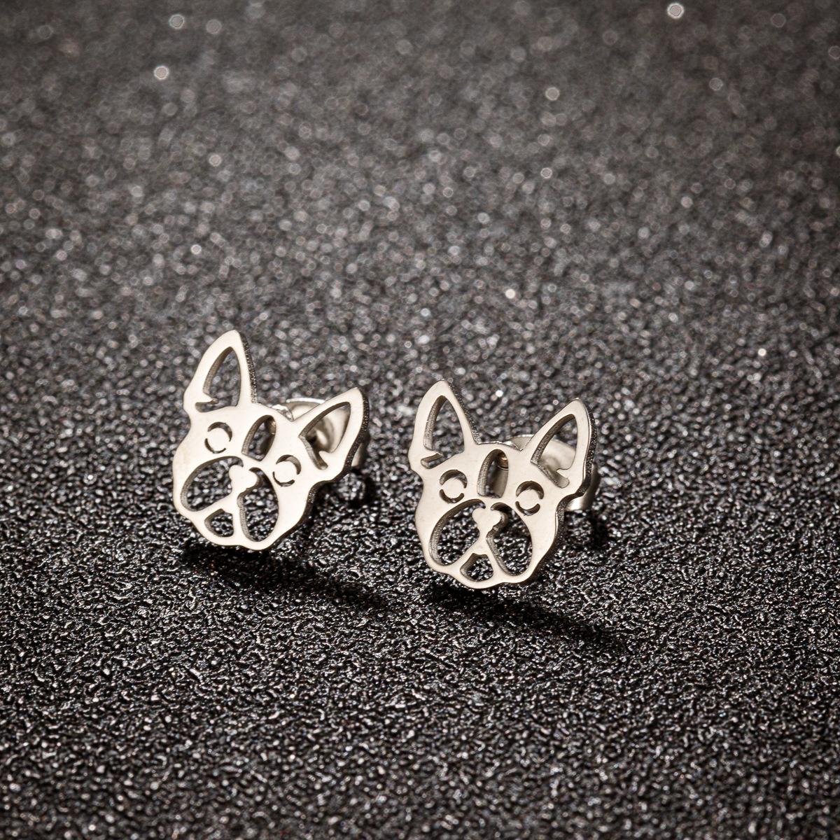Brincos de orelha de cachorro fofo bulldog francês, homens e mulheres, personalidade, aço inoxidável, estilo punk retrô, animal