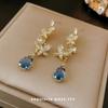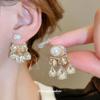 Brincos de Pérola Quadrada com Flor Gota de Água Incrustada de Diamantes, Versátil e Elegante, Moda e Novo Brincos de Luxo Leve de Fábrica
