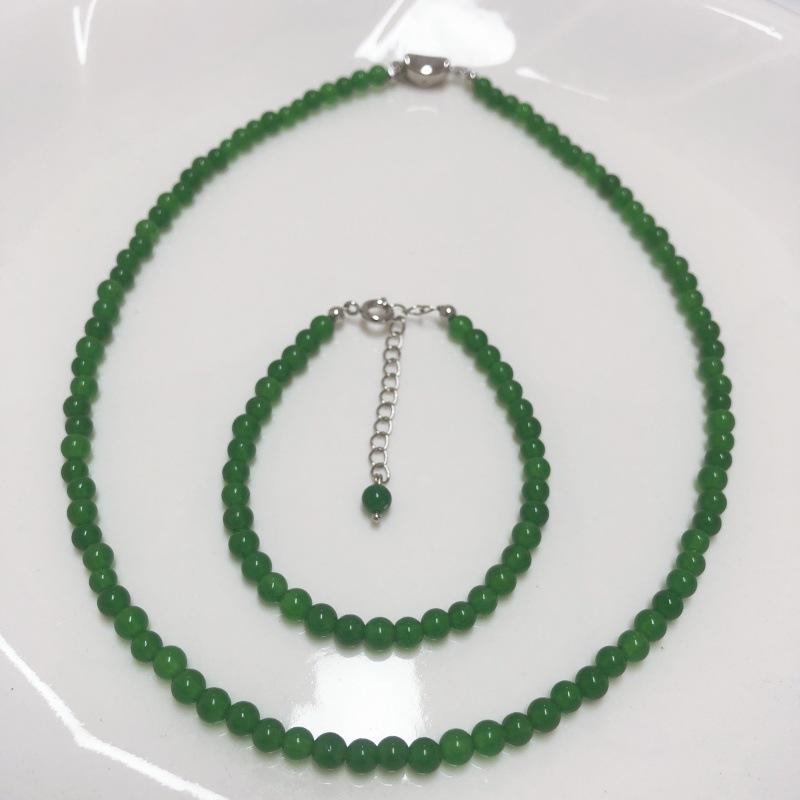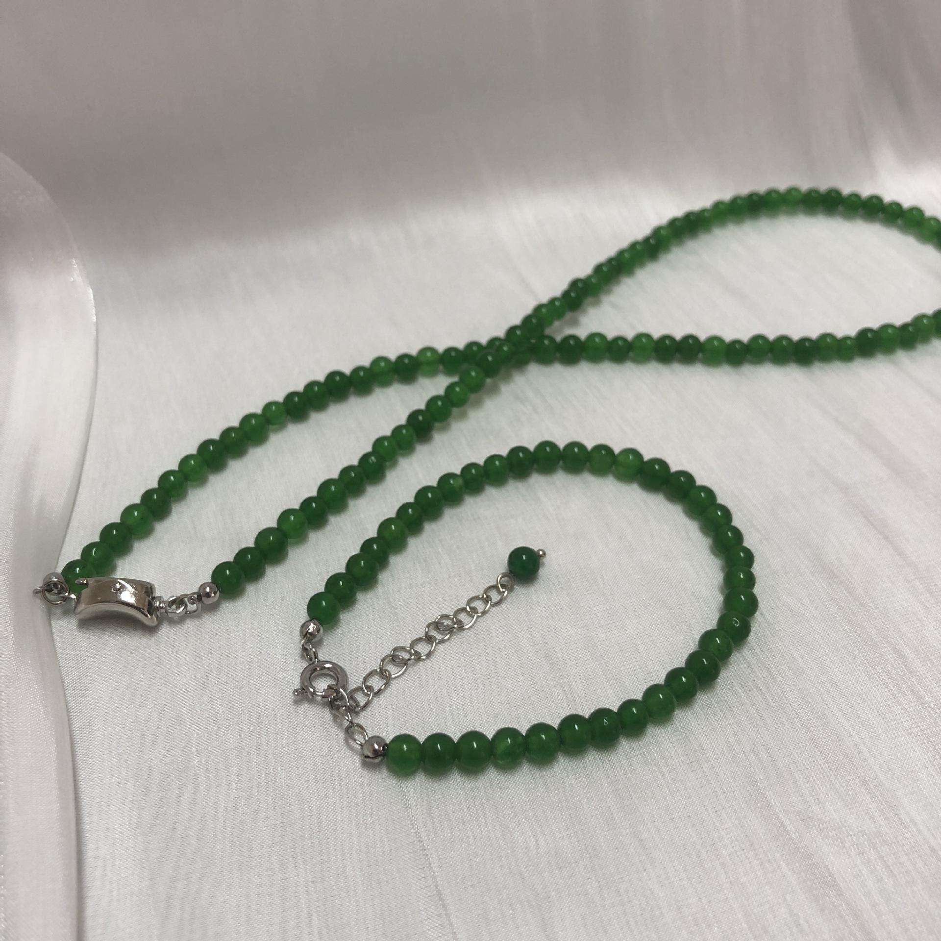 Compre Novo S925 Prata Esterlina Fivela Alta Gelo Verde Calcedônia Contas Colar Fivela de Lingote Novo Estilo Chinês Clavícula Corrente Pulseira terno no atacado no Joom.pro