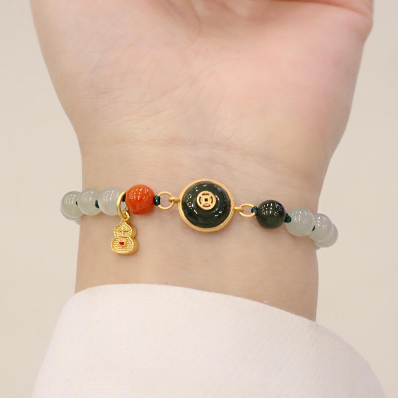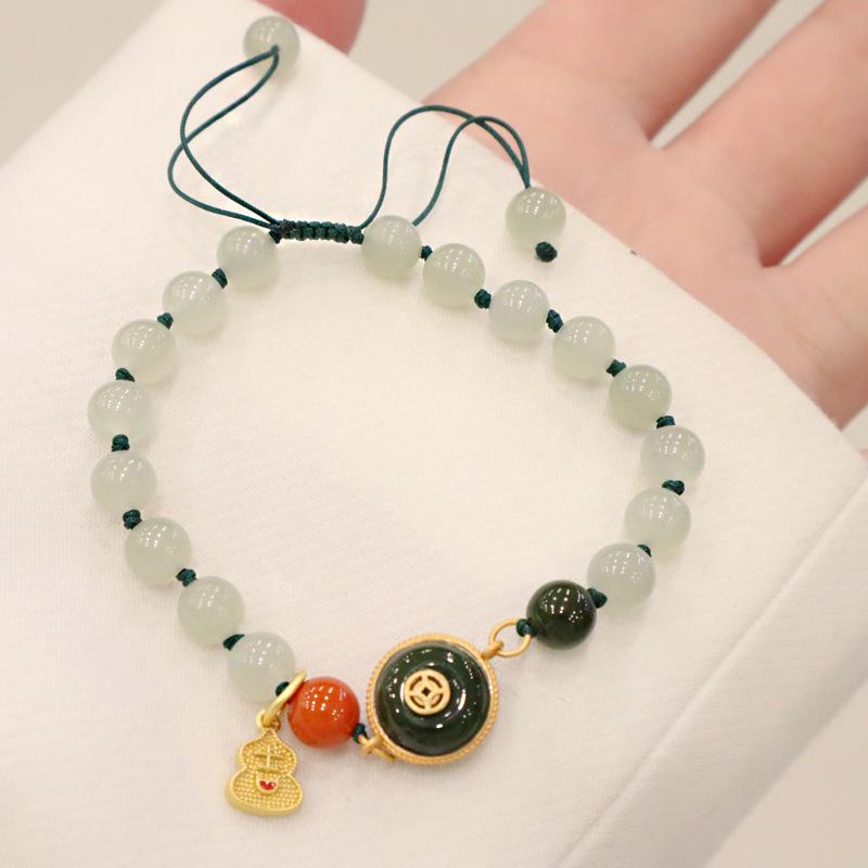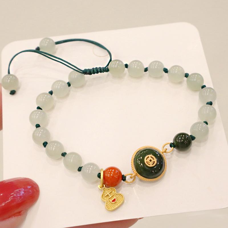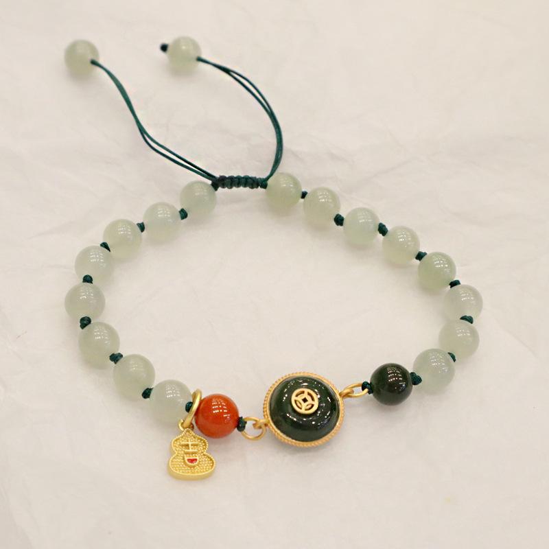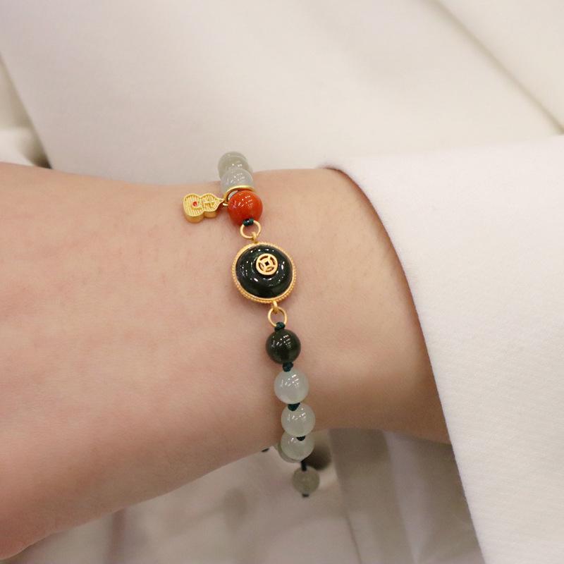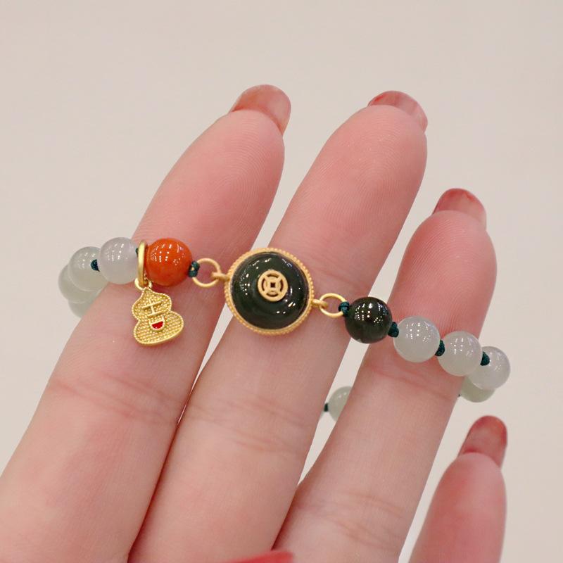 Pulseira de acessórios de jade vermelho do sul de jade hetian natural, design de nicho feminino, pulseira retrô tecida à mão