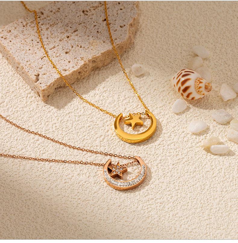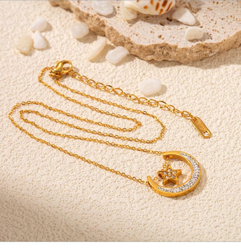Compre Nova moda popular europeia e americana jóias personalizadas de aço inoxidável estrela lua colar acessórios transfronteiriços titânio aço clavícula colar para mulheres no atacado no Joom.pro