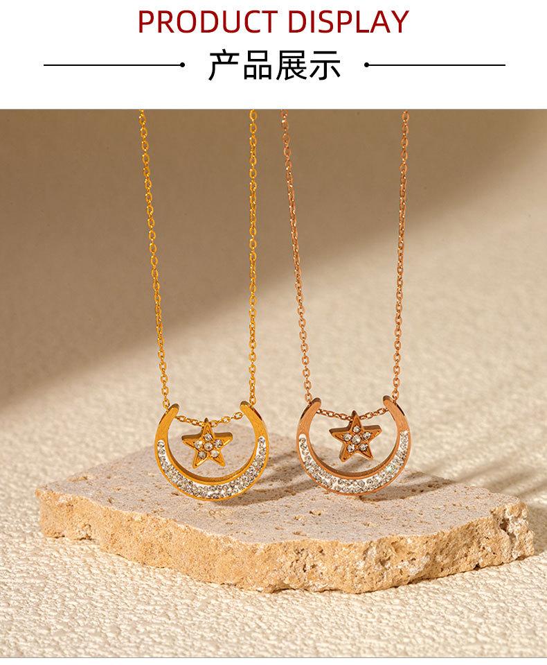 Nova moda popular europeia e americana jóias personalizadas de aço inoxidável estrela lua colar acessórios transfronteiriços titânio aço clavícula colar para mulheres