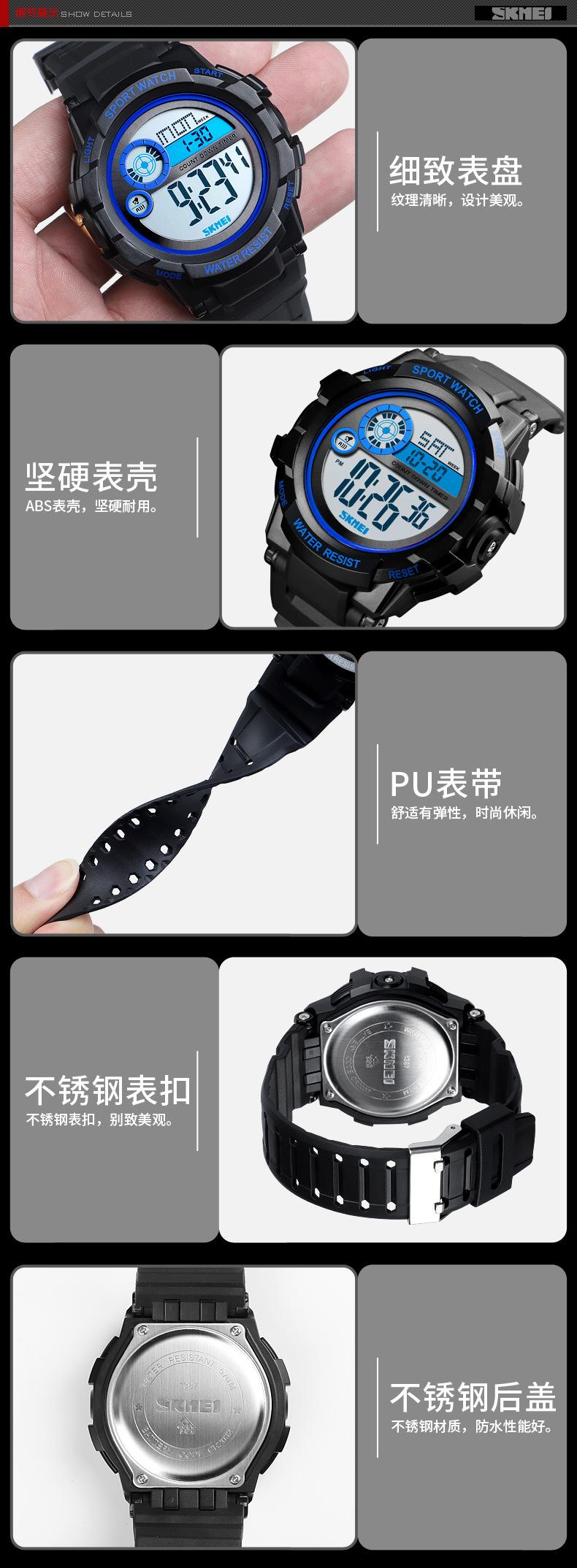 | Material | Caixa de material ABS, pulseira de PU, espelho de resina altamente transparente, tampa inferior de aço inoxidável, fivela de aço inoxidável |