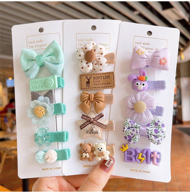 | Desenho animado urso três peças grampo de cabelo feminino verão fofo doce menina franja clipe acrílico clipe lateral estrela grampo de cabelo |
