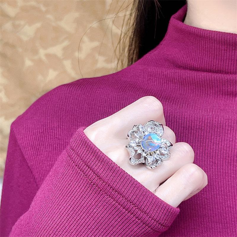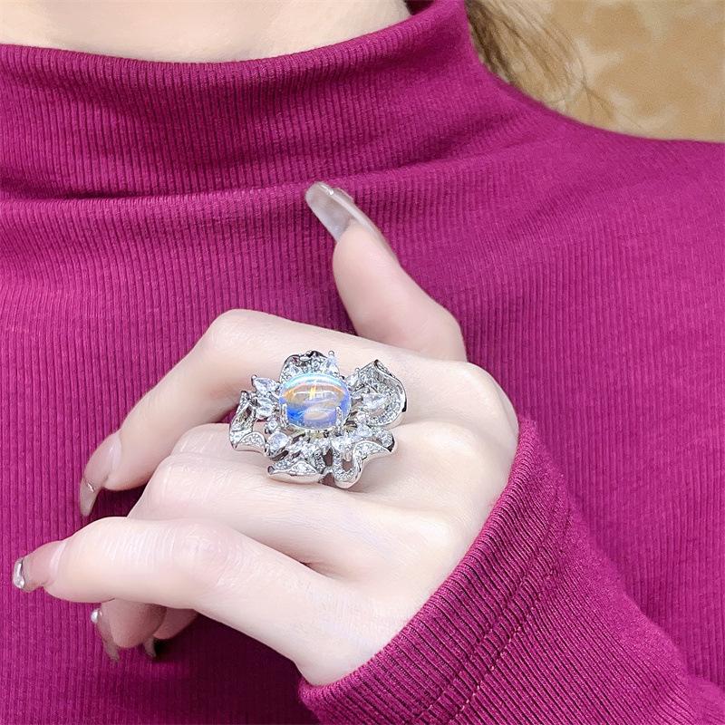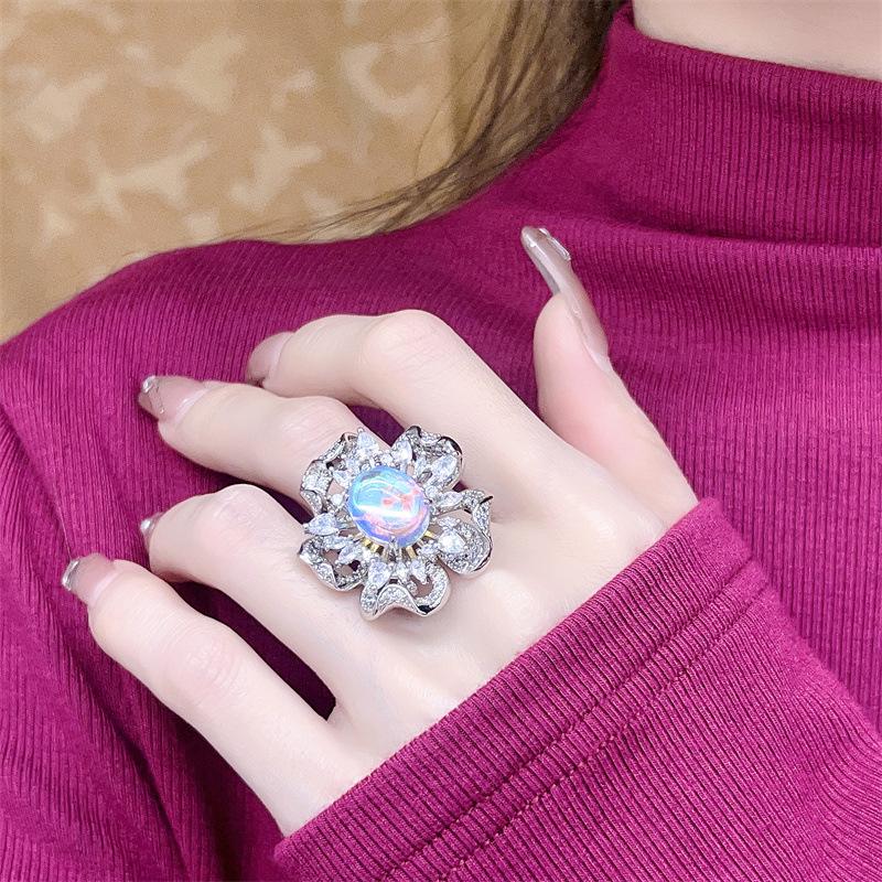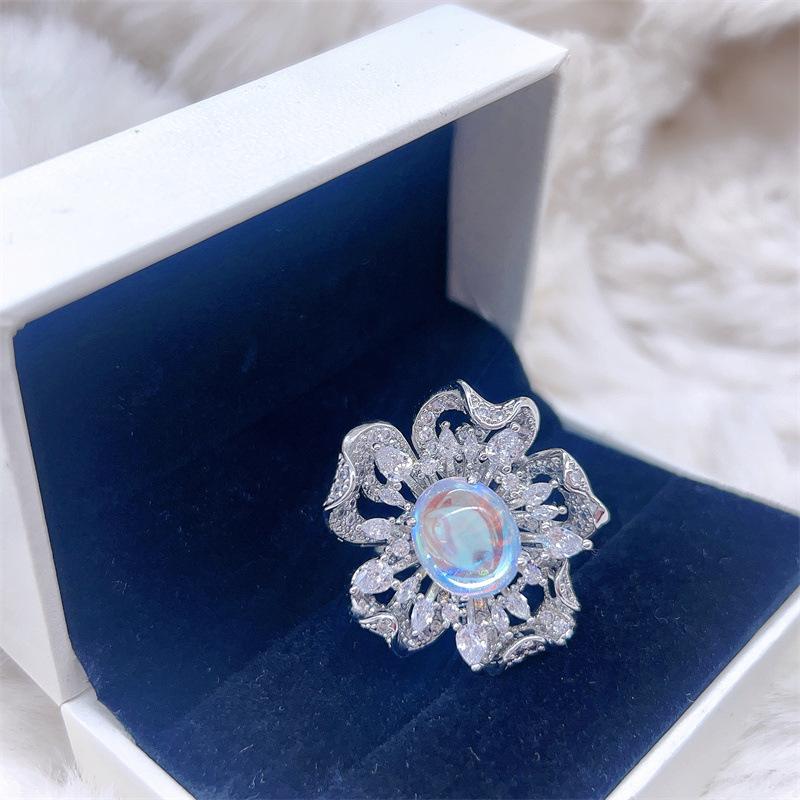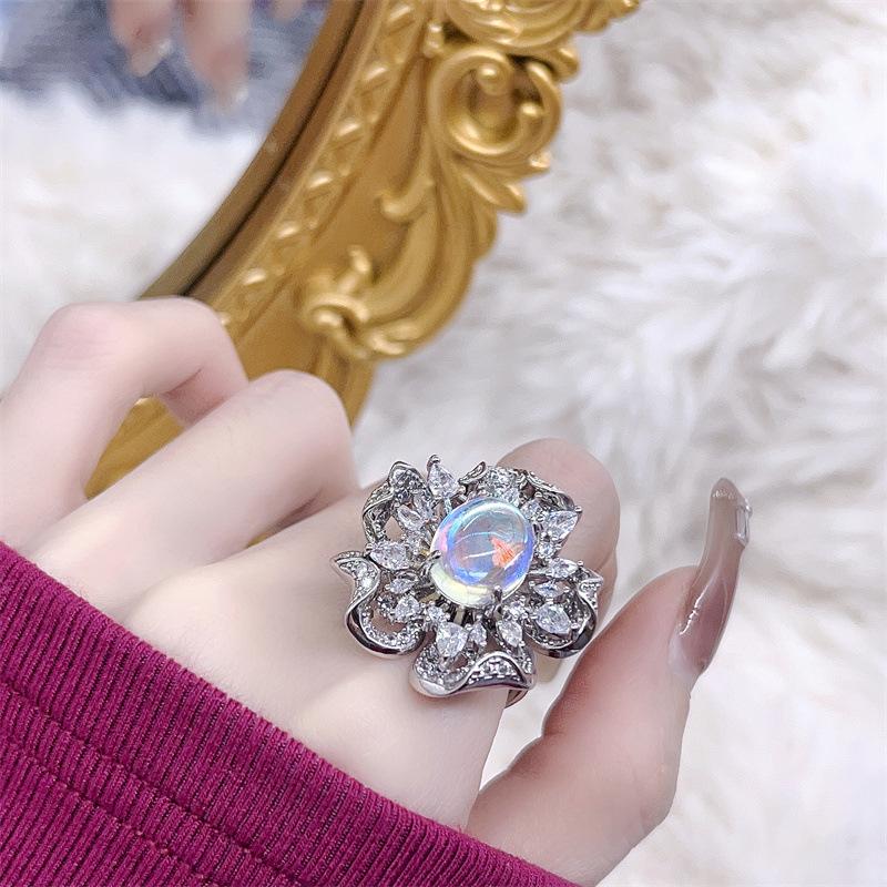 Anel de pétala requintado feminino ajustável fantasia cor zircão cor tesouro all-match internet popular namorada presente livro vermelho atacado