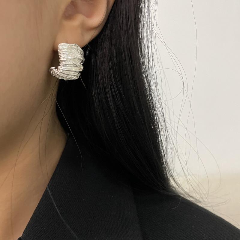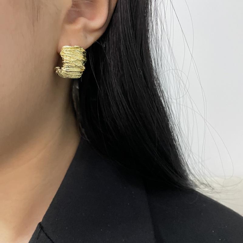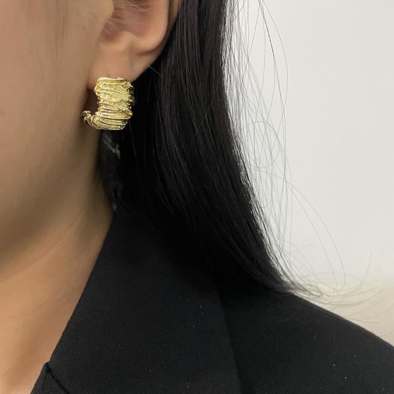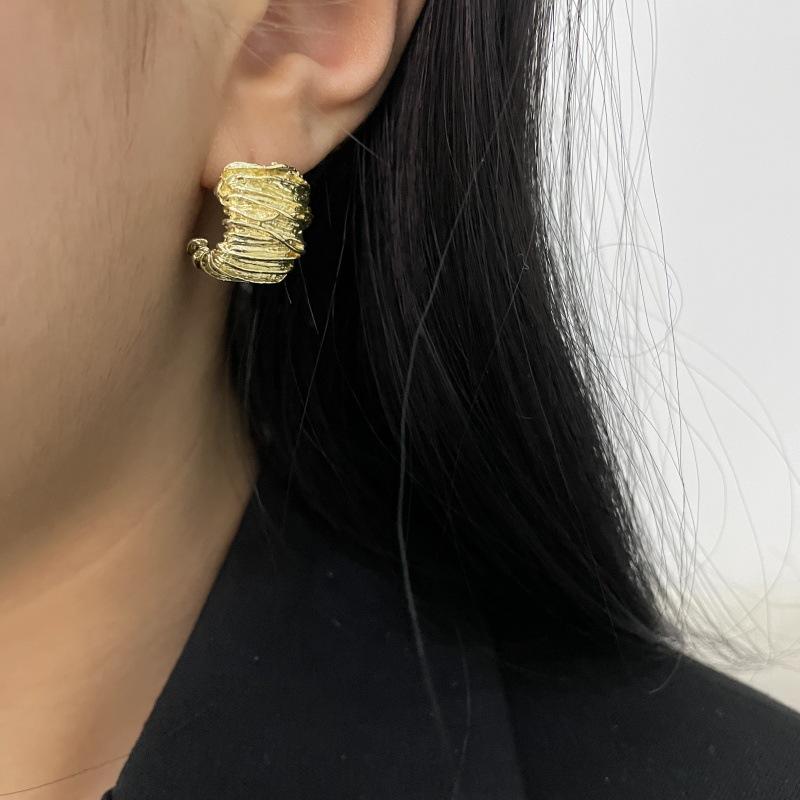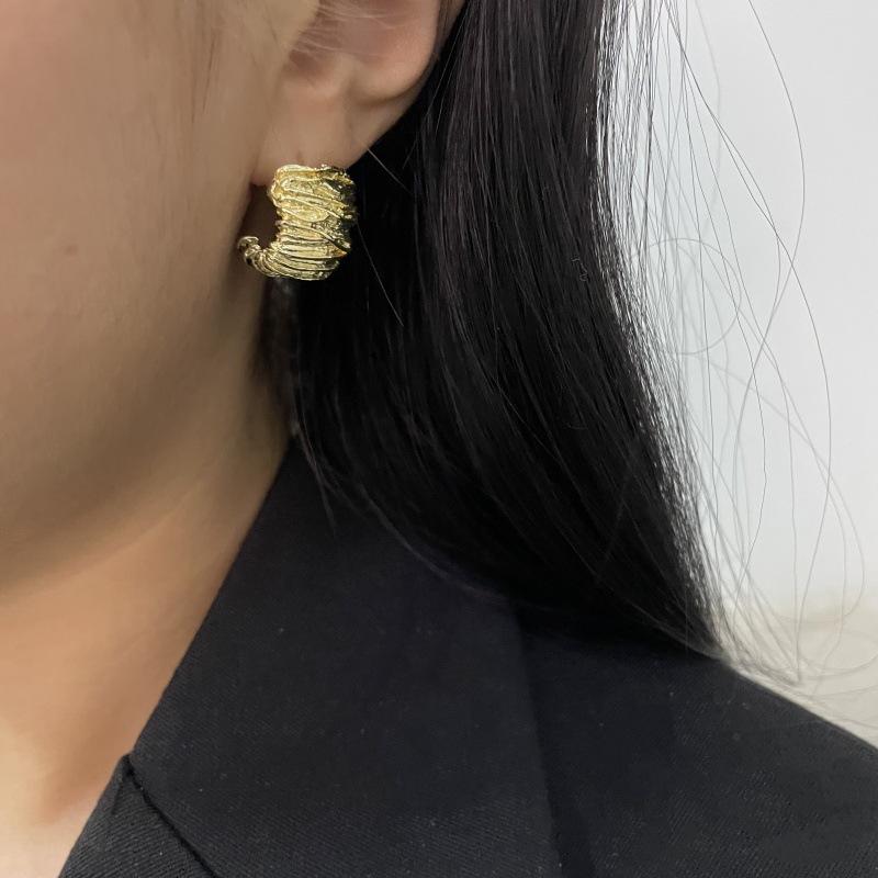 Moda Luxo Leve Simples Textura Plissada Brincos em Forma de C Requintado Estilo Frio Nicho Design Moderno Brincos Exclusivos