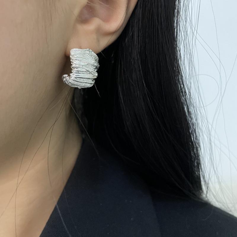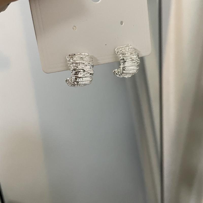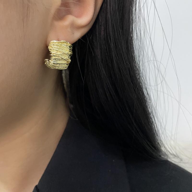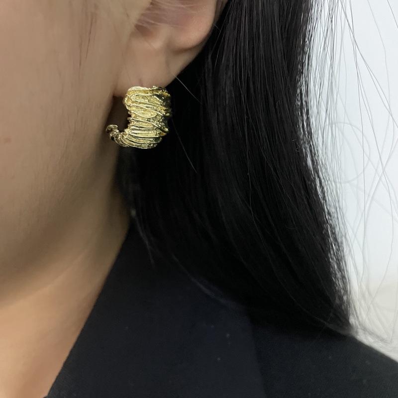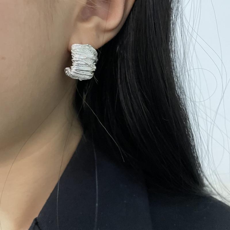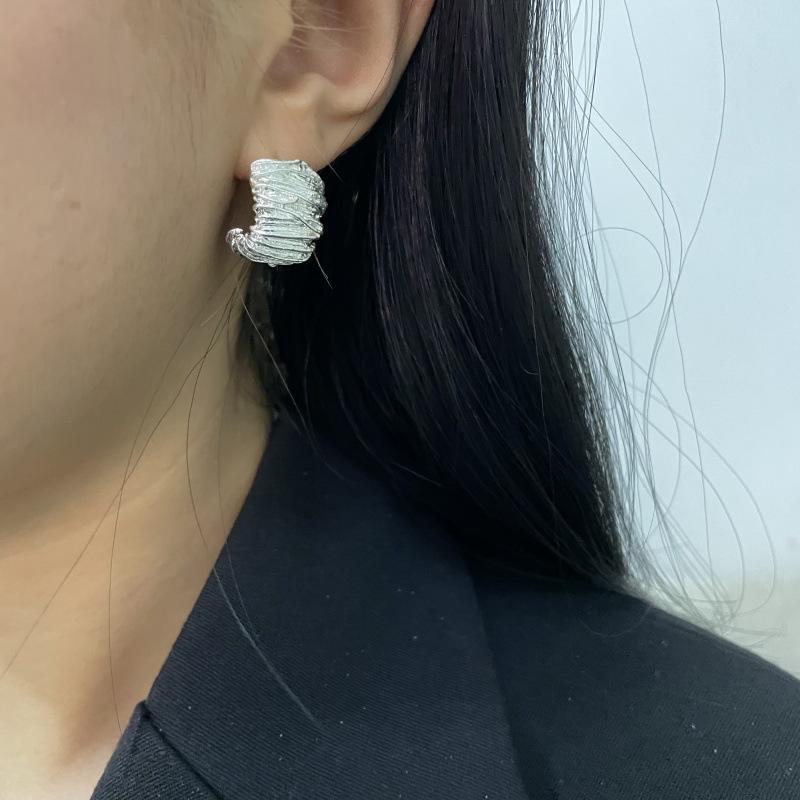 Moda Luxo Leve Simples Textura Plissada Brincos em Forma de C Requintado Estilo Frio Nicho Design Moderno Brincos Exclusivos