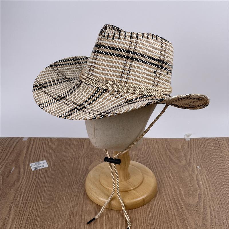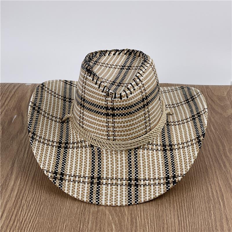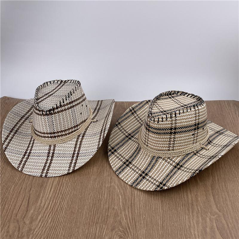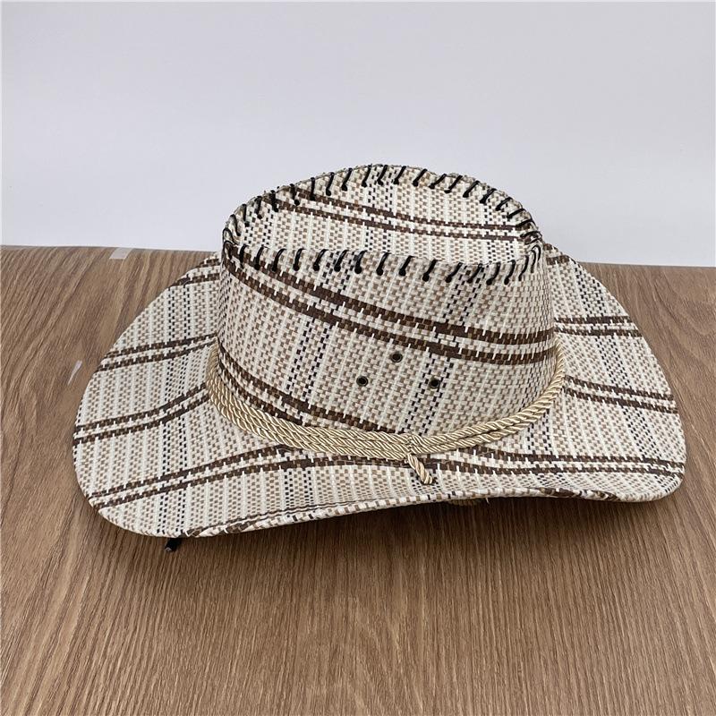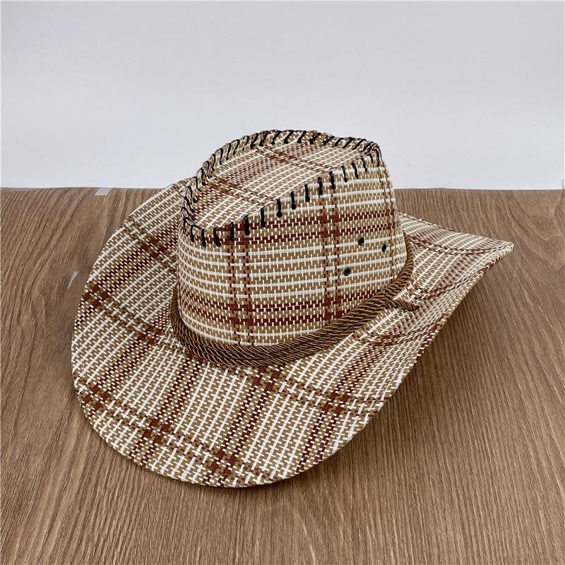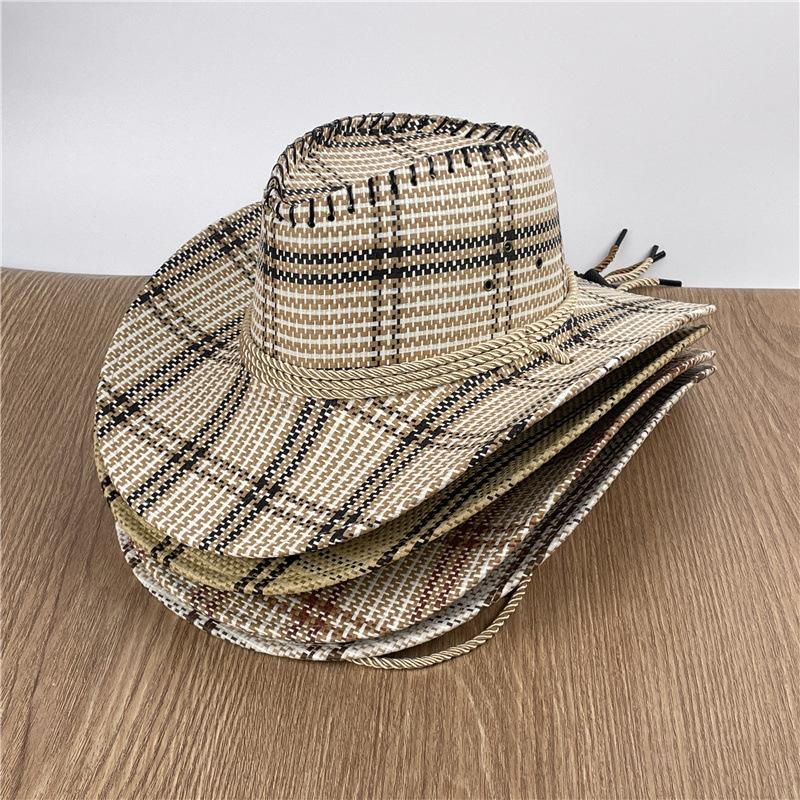 Chapéu de cowboy ocidental protetor solar masculino grande cornija chapéu de sol feminino ao ar livre malha respirável casual chapéu de sol verão palha chapéu