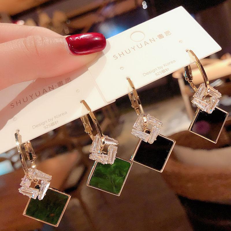 Coreano Dongdaemun Moda Cristal Retro Preto Quadrado Brincos Na Moda Elegante Internet Celebridade Super Fada All-match Brincos de Prata para Mulheres