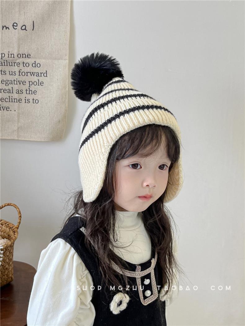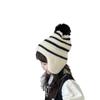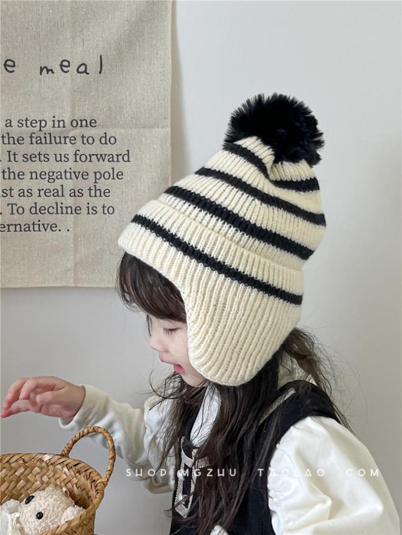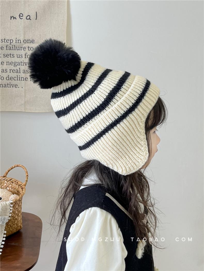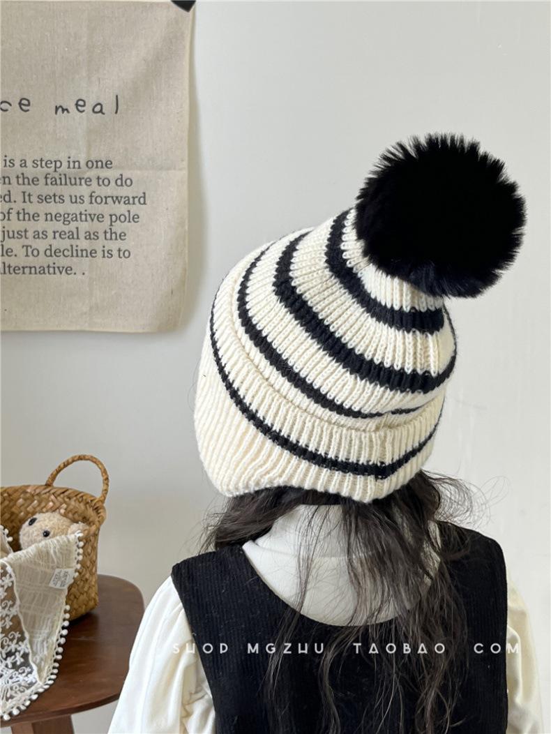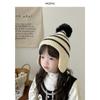Chapéu infantil outono e inverno meninas chapéu de lã versátil listrado menina grande bola de pelo pulôver meninos chapéu quente moda