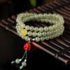 Pulseira de Jade Hetian Natural Água Ensolarada Contas Redondas com Contas Hipped de Cera de Abelha Cabeça de Buda Vermelho do Sul Pulseira de Múltiplas Voltas Feminina Corrente de Lã