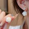 Brincos de Flor Rosa Branca Francesa para Mulheres, Novo Design de Moda Retrô Trendy, Brincos de Temperamento com Diamantes Cintilantes