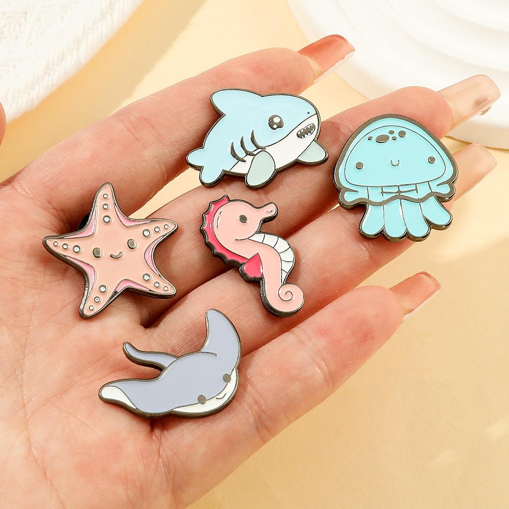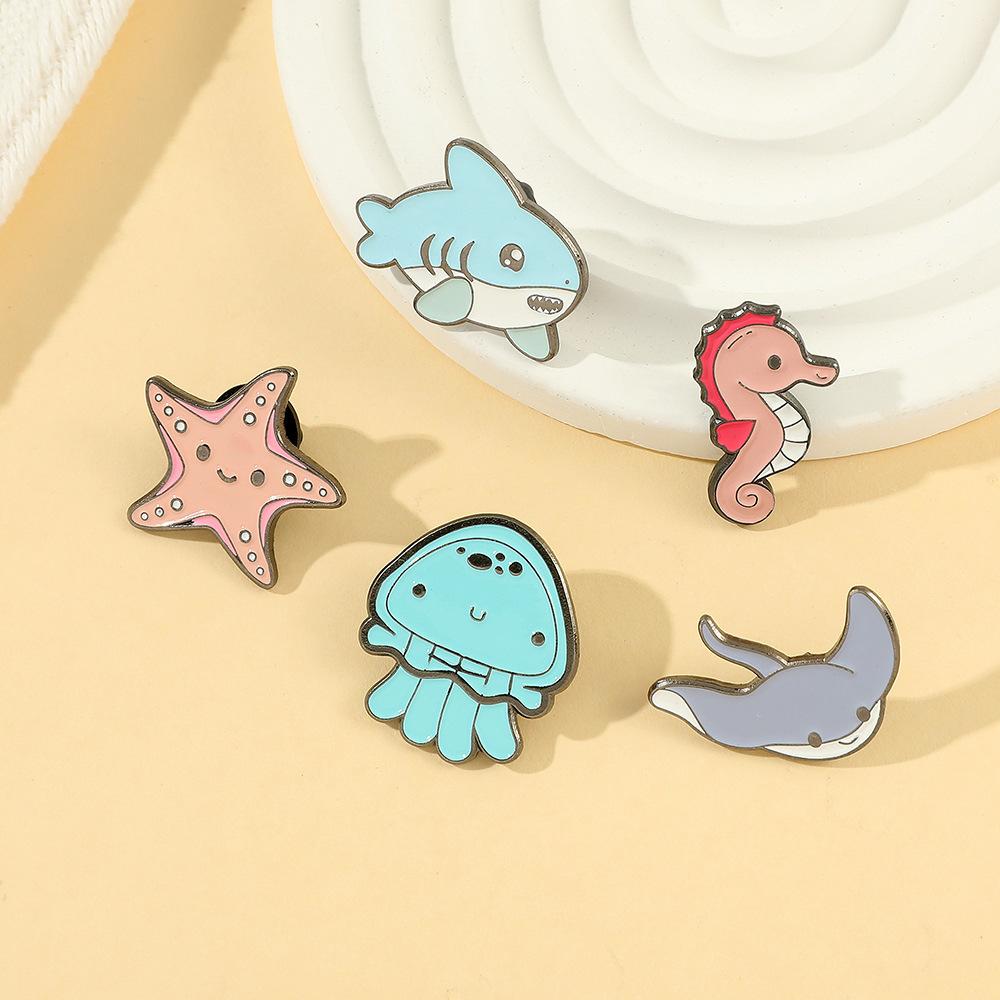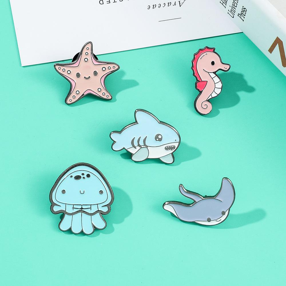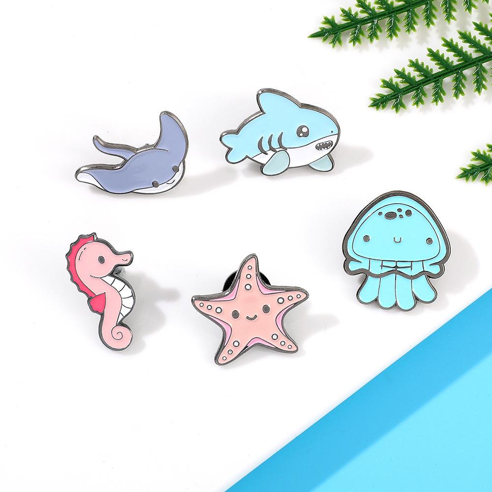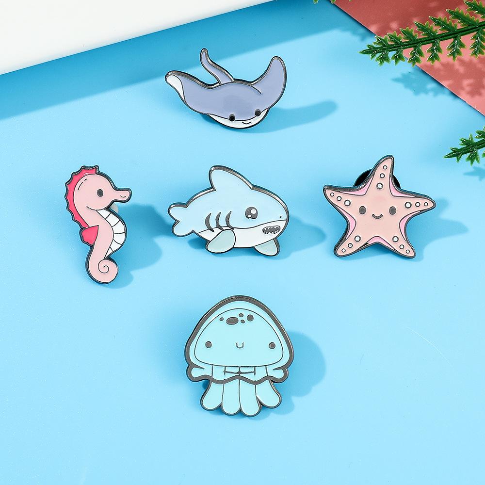 Série de vida marinha Q versão broche tubarão água-viva estrela do mar cavalo-marinho broche acessórios de vestuário colarinho pino distintivo de metal