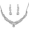 Brincos de Liga Cravejados de Diamantes + Colar Conjunto Nupcial Joias Decorativas Casamento Joias Inseridas Brincos Estilo Coreano Casamento