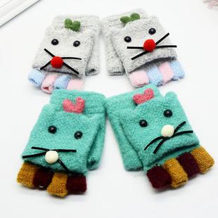 | Crianças meio dedo flip luvas de inverno cor sólida luvas de escrita cashmere malha dos desenhos animados luvas novo estilo | |