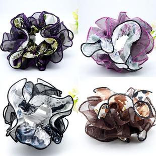 | Novo grande fio de cetim dupla camada tecido assado borda cabeça flor anel de cabelo flor cocar elástico corda de cabelo acessórios para cabelo | |