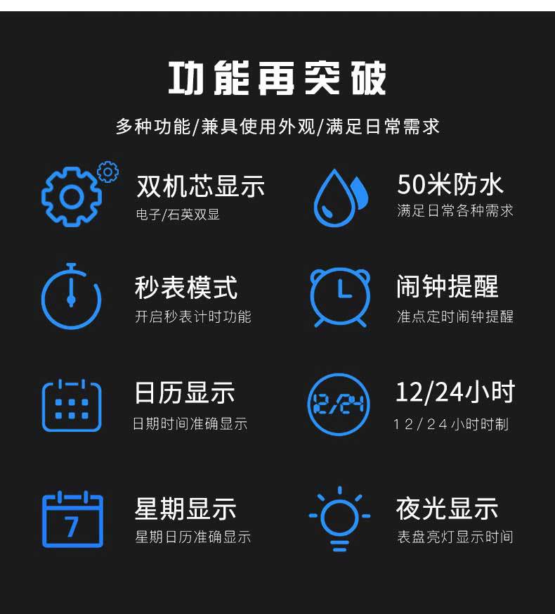 4. Os relógios à prova d’água e à prova d’água são à prova d’água no dia a dia, mas não podem ser usados para nadar ou mergulhar. Recomenda-se não usá-los no banho para evitar curto-circuito ou ferrugem das bobinas de movimento após a entrada de água, o que pode afetar a hora do relógio.