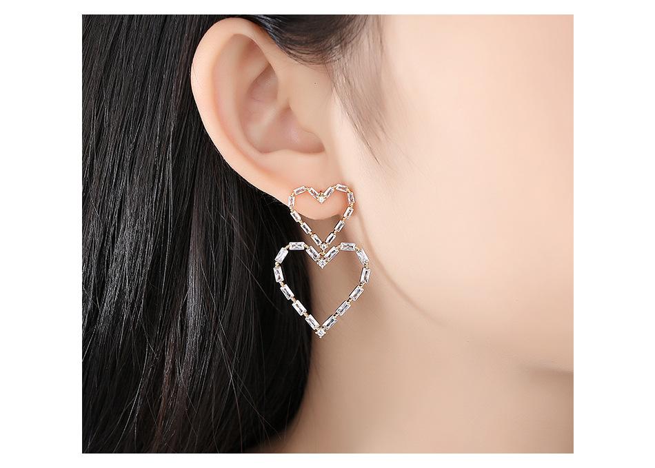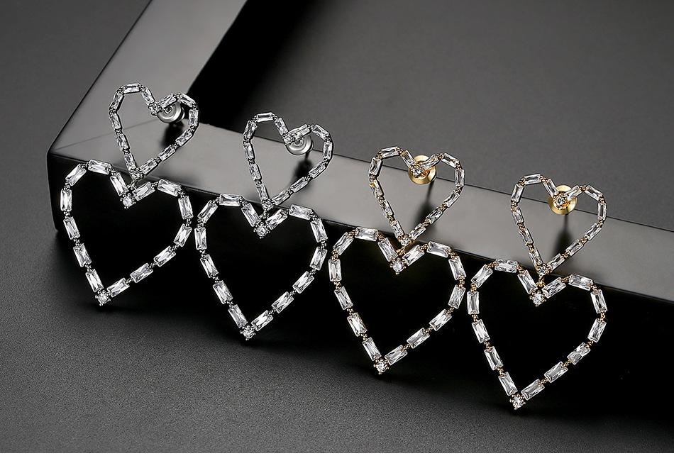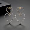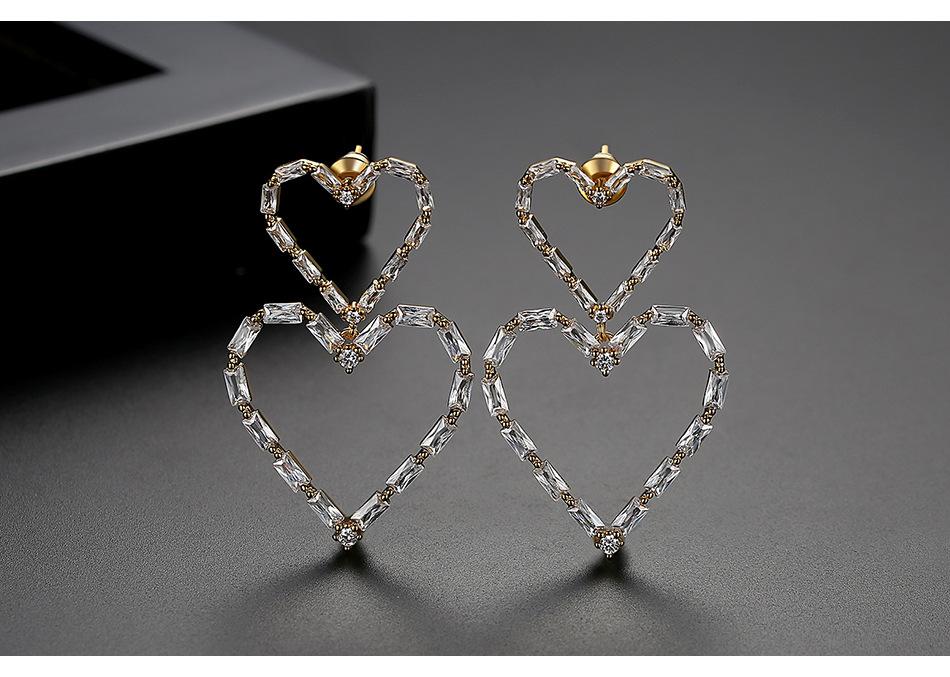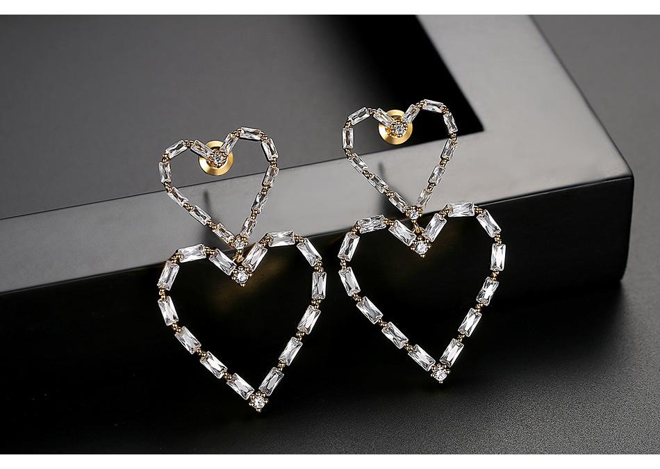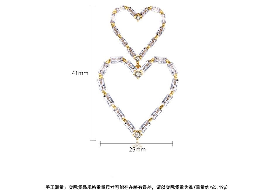 Compre Jinse oco pêssego coração brincos duplo amor cobre incrustado zircão brincos europeus e americanos novas mulheres elegantes banquete jóias no atacado no Joom.pro