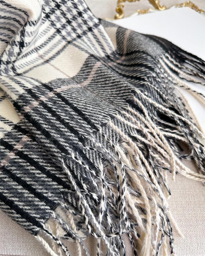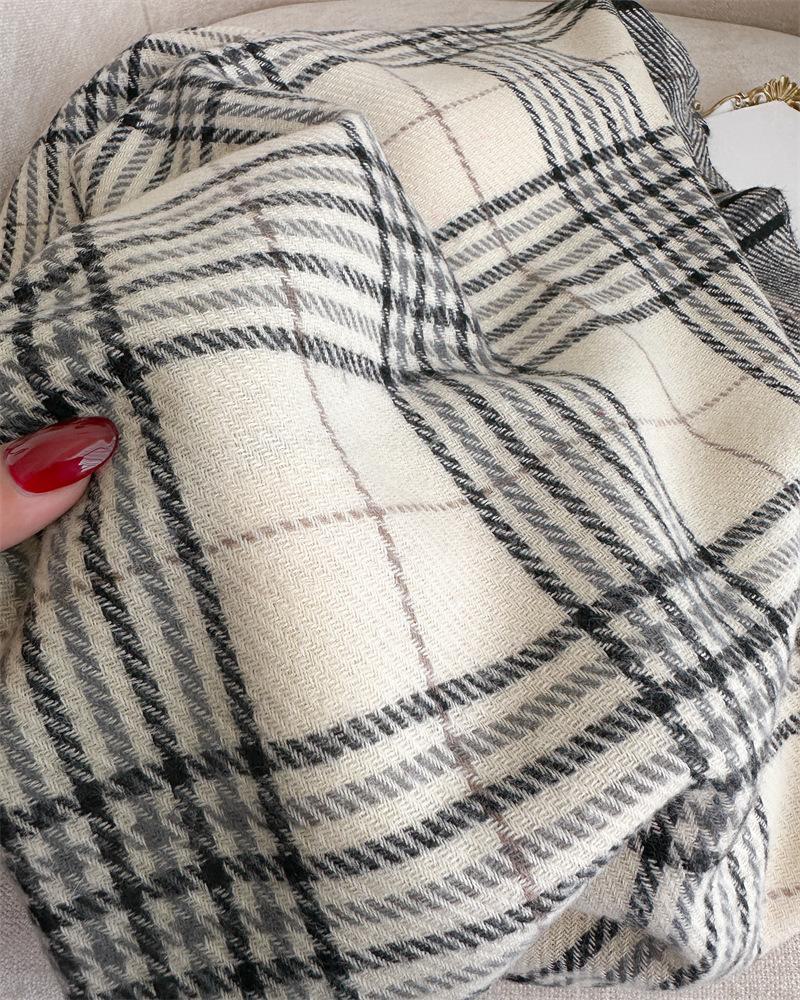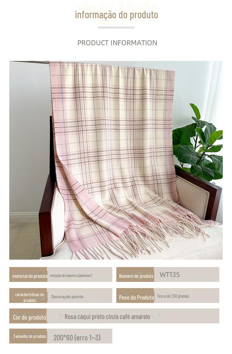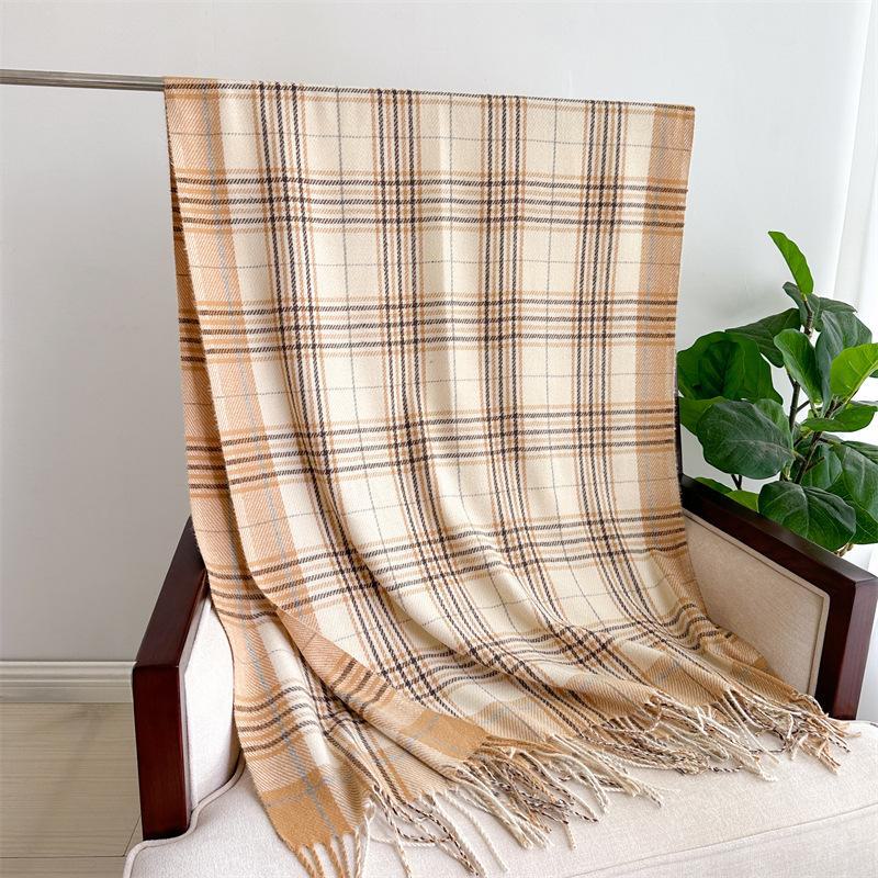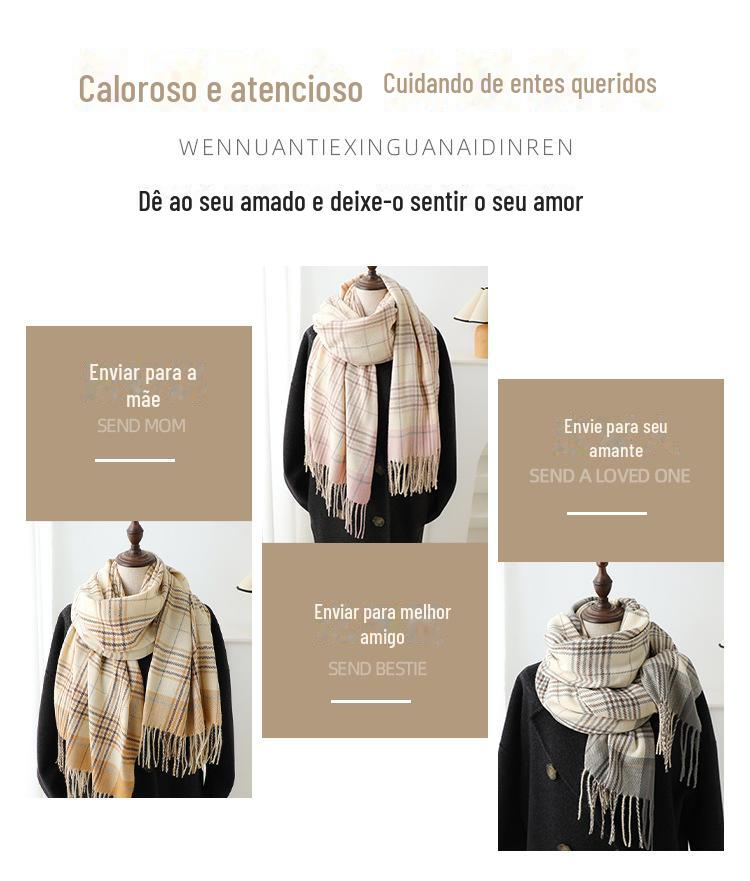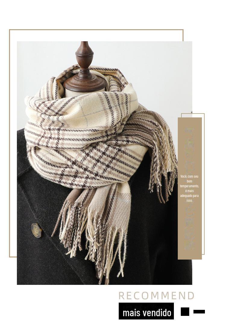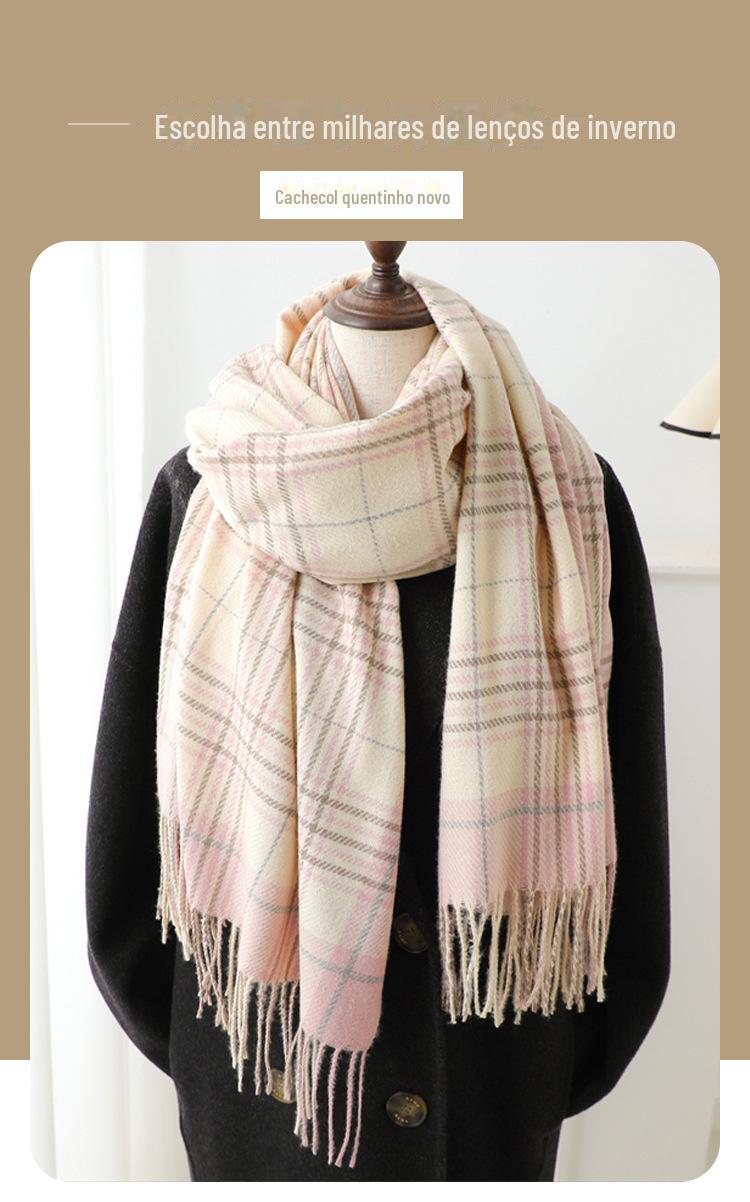 Novo Cachecol de Caxemira Xadrez Outono e Inverno Estilo Coreano Simples All-match Pescoço Quente Xale de Borla Engrossado para Mulheres