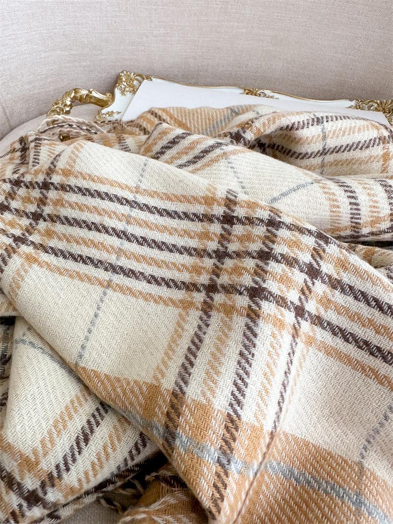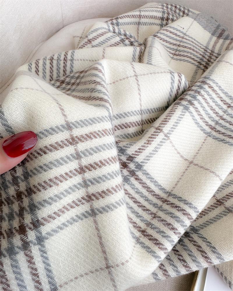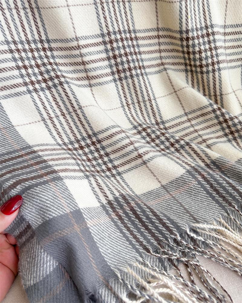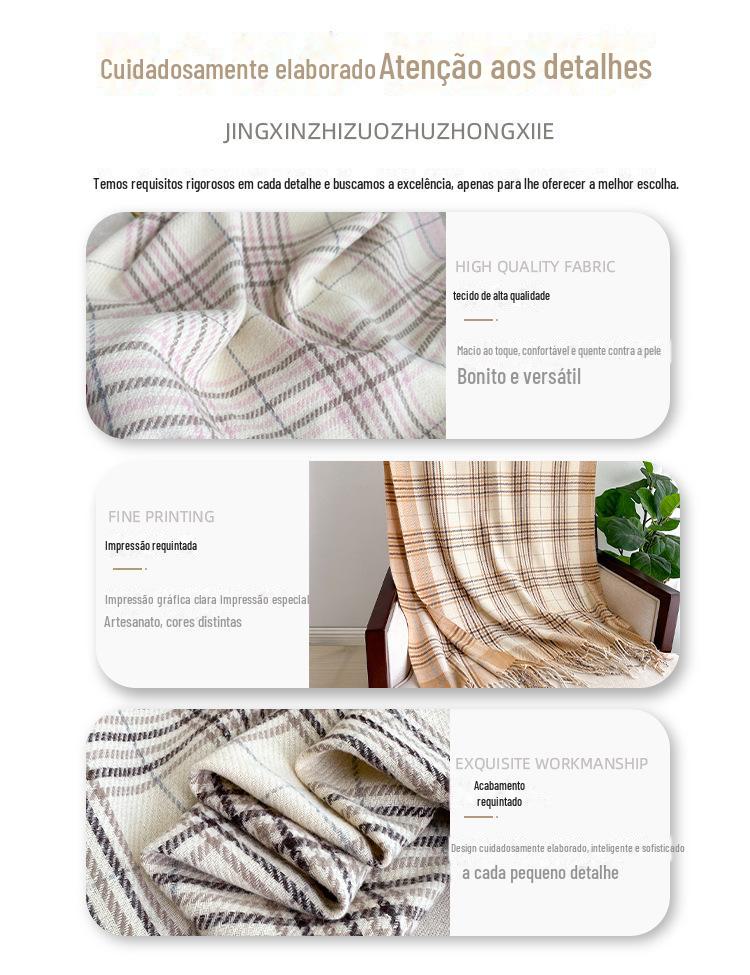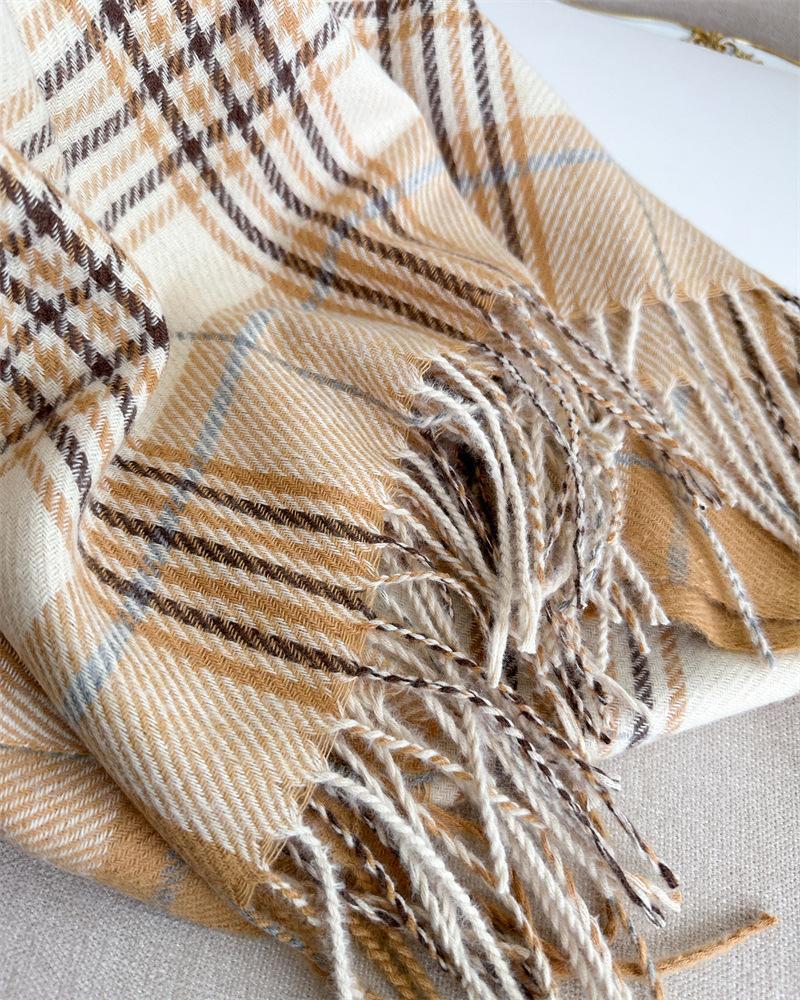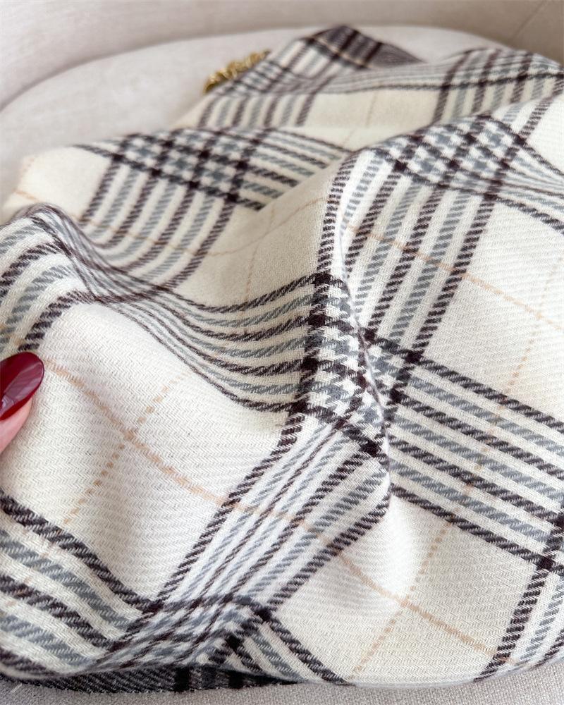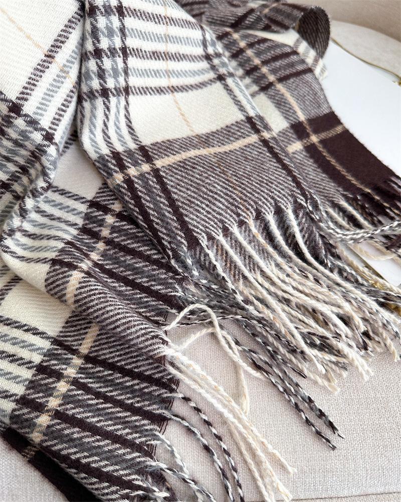 Novo Cachecol de Caxemira Xadrez Outono e Inverno Estilo Coreano Simples All-match Pescoço Quente Xale de Borla Engrossado para Mulheres