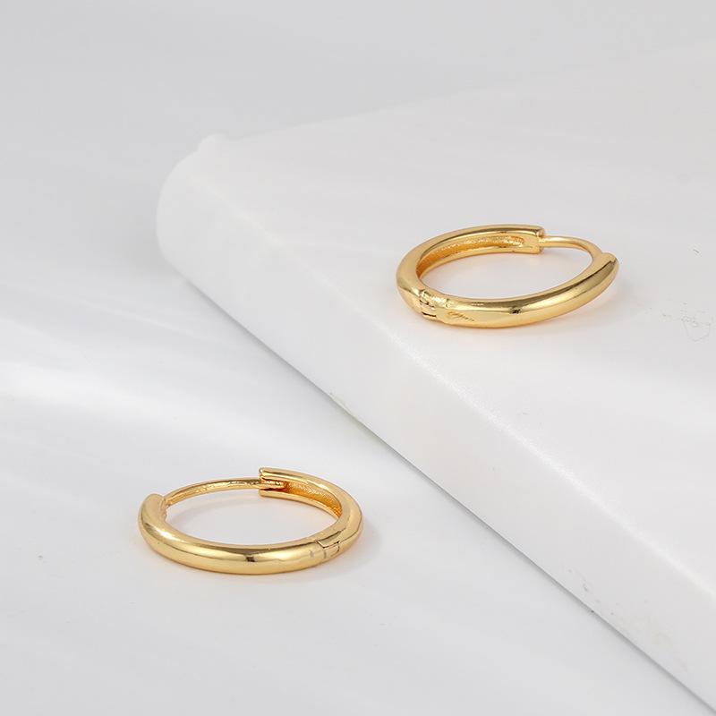Brincos de círculo simples e frescos para mulheres, banhados a cobre, ouro verdadeiro, brincos geométricos distintos, brincos de nicho, lindos e modernos