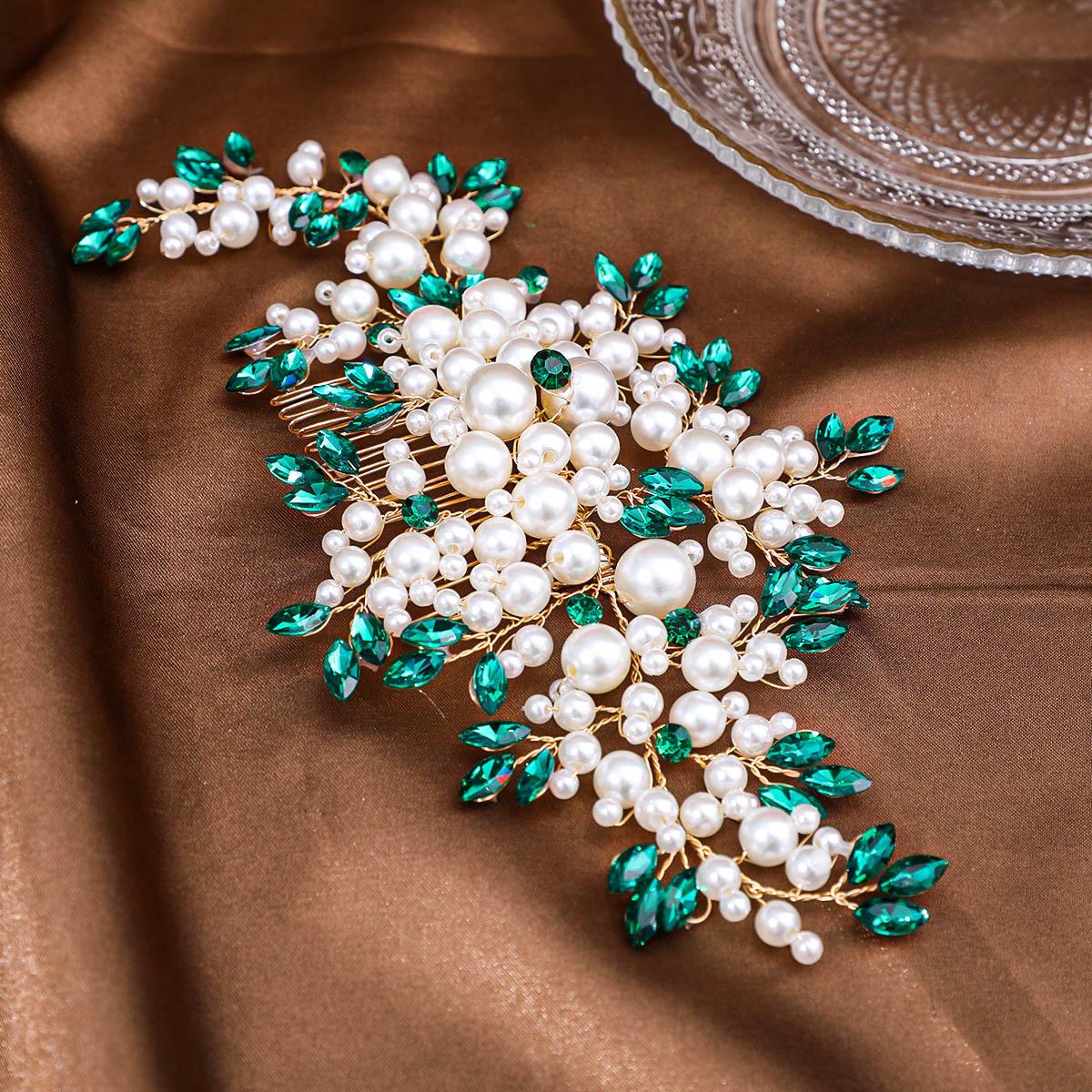 Pente de pérolas para noivas transfronteiriças, acessórios para cabelo, estilo europeu, indústria pesada, moda, vestido de noiva, pente de cabelo com strass