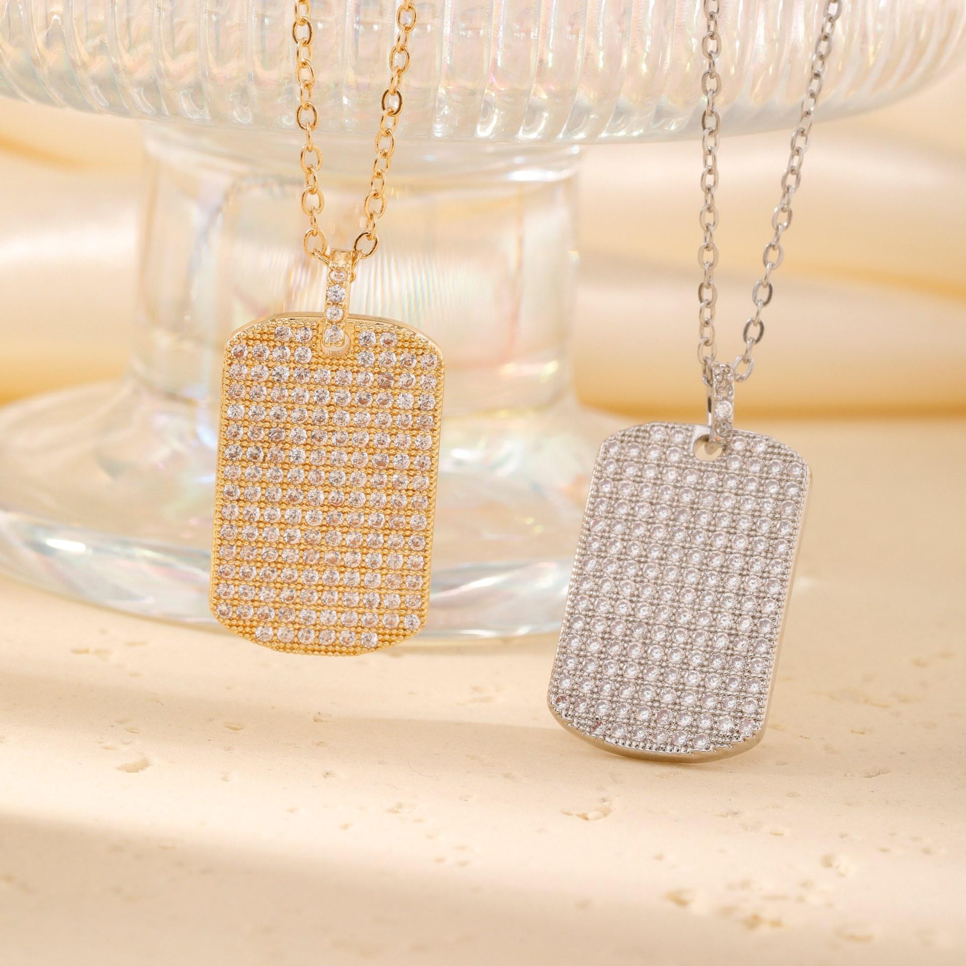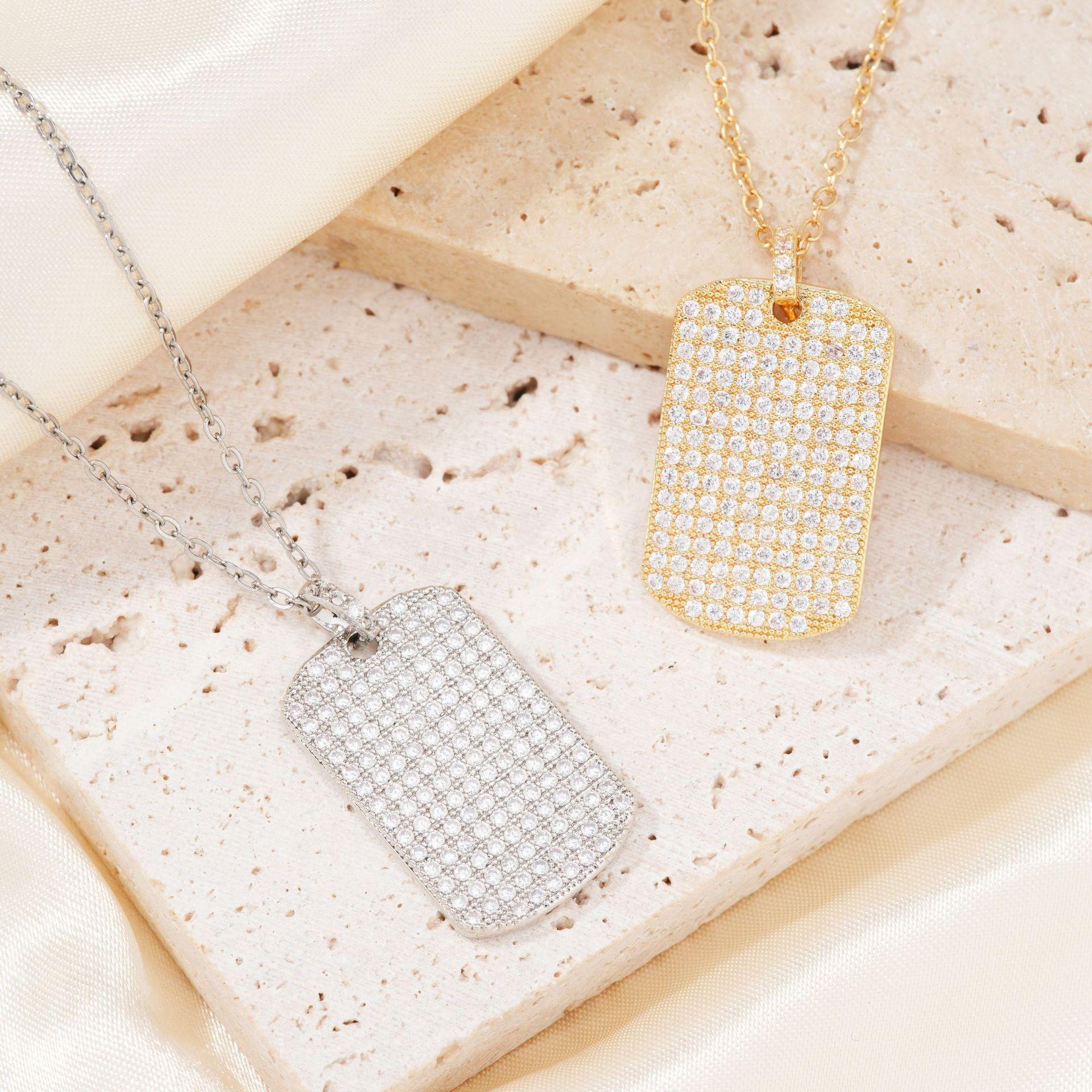 Compre Europeu e Americano Hot Ins Moda Luz de Luxo Elegante All-match Pingente de Jóias Diamante Completo Quadrado Pingente Colar Colar Atacado no atacado no Joom.pro