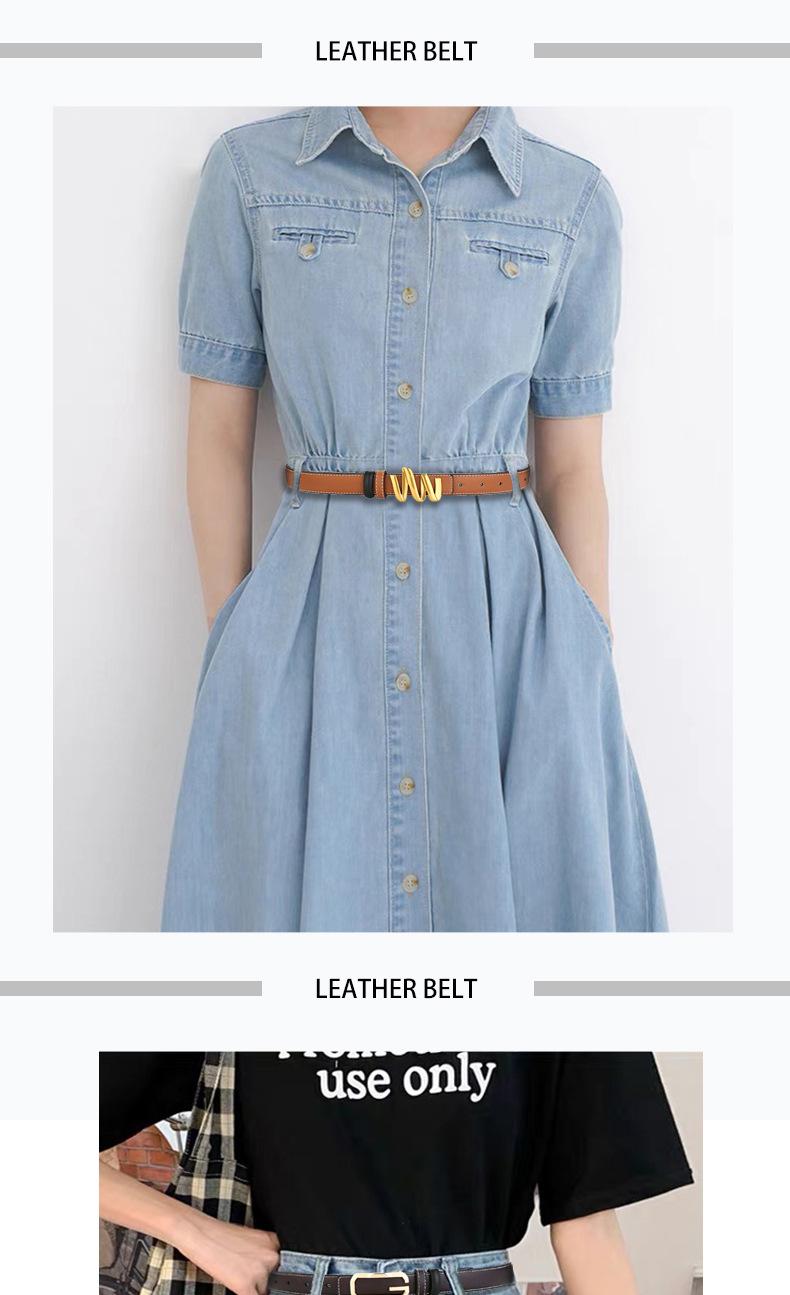 Cinto feminino com fivela lisa All-Match, design de fivela ondulada, vestido jeans combinando, cinto fino, tendência feminina