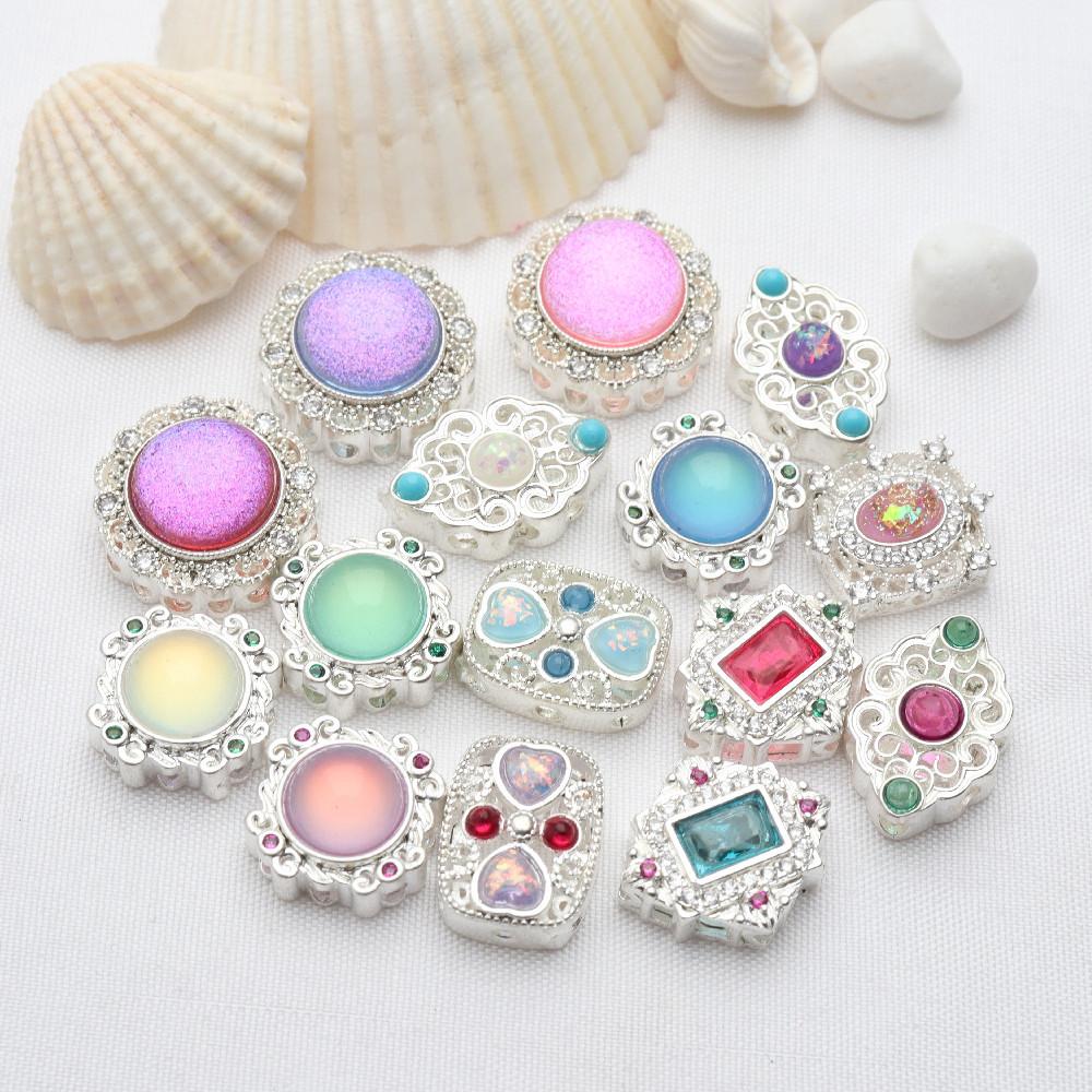 Contas soltas de prata banhadas a prata grossa incrustadas com pedra de diamante faça você mesmo acessórios de pulseira pulseira com contas acessórios espaçadores contas