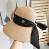 Arco Verão Chapéu de Palha Tecido Fino Casual Chapéu de Sol Simples Férias de Praia Proteção Solar Jazz Chapéu Feminino Moderno