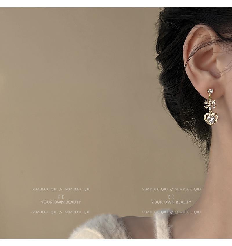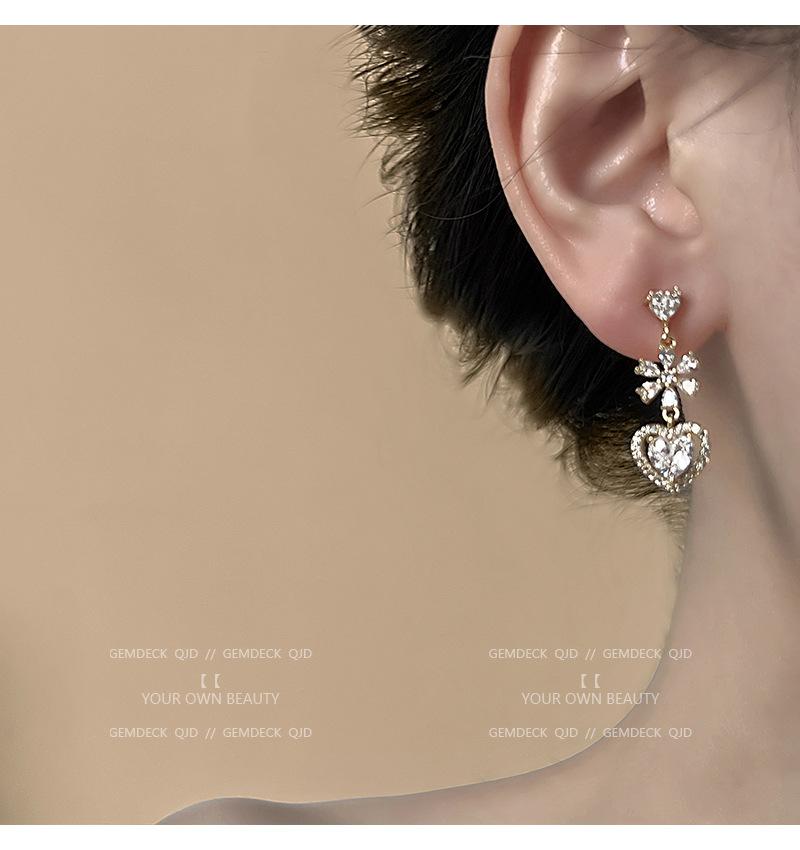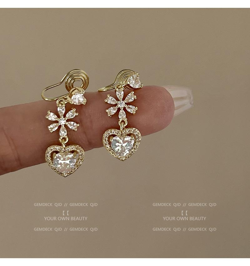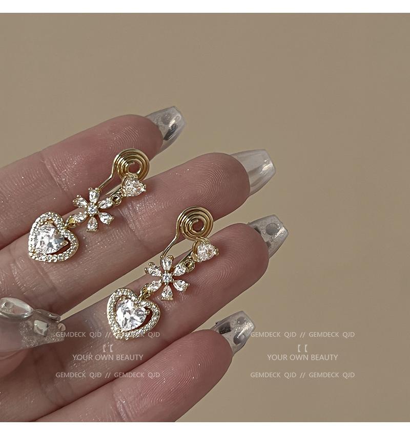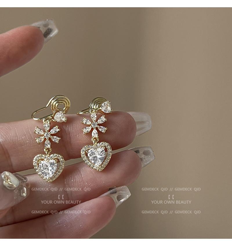 Francês Suave Elegante Brincos de Amor Mulheres Super Flash Zircon Ear Clip Luz Nicho de Luxo Design Avançado Sentido Brincos Brincos Brincos