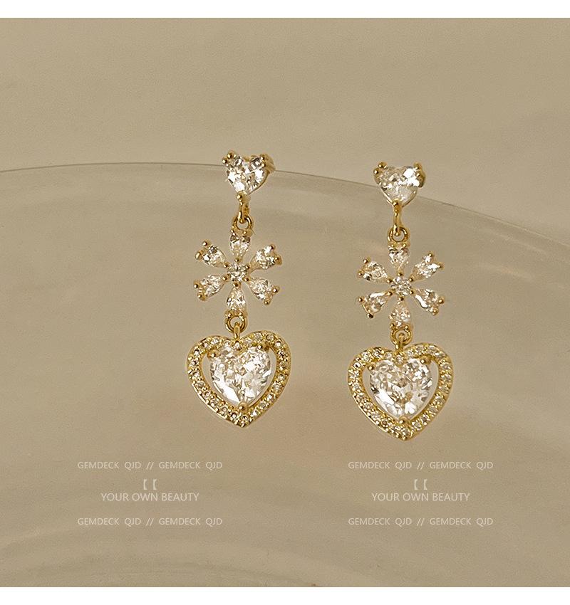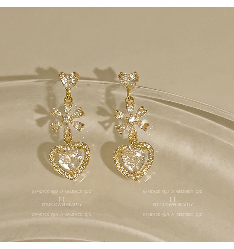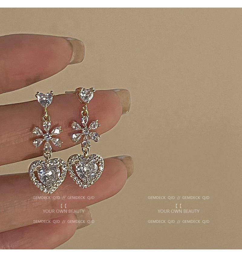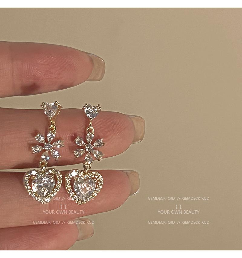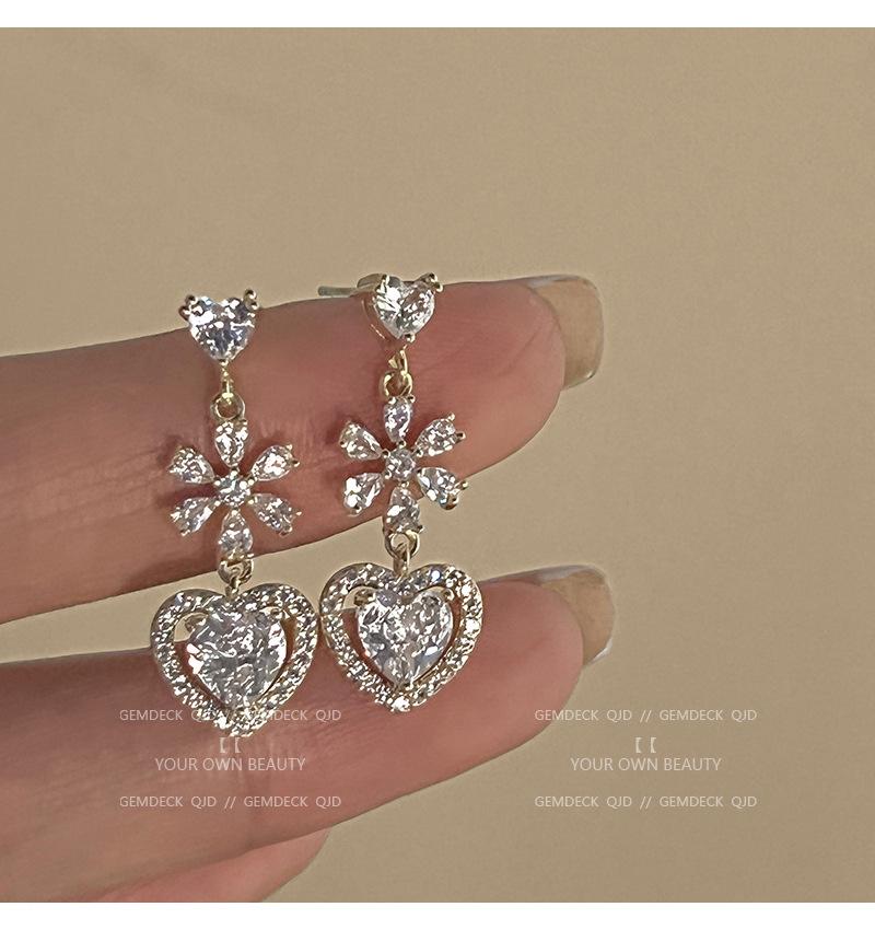 Francês Suave Elegante Brincos de Amor Mulheres Super Flash Zircon Ear Clip Luz Nicho de Luxo Design Avançado Sentido Brincos Brincos Brincos