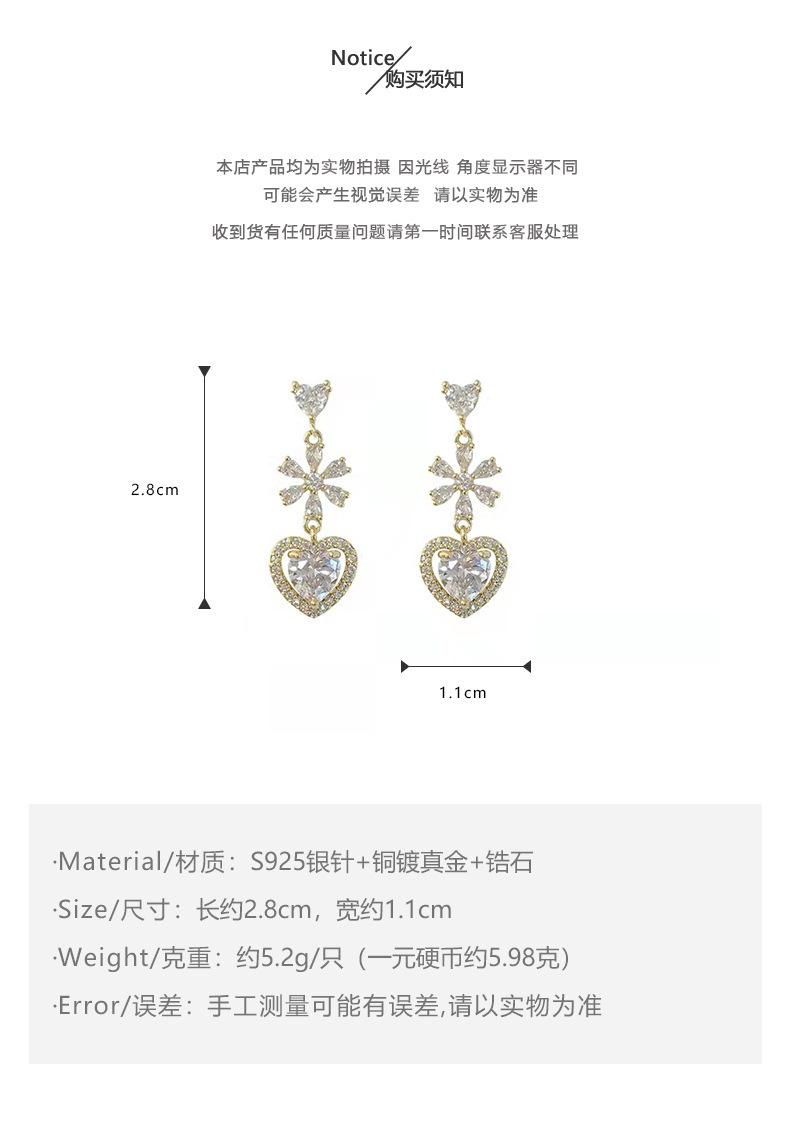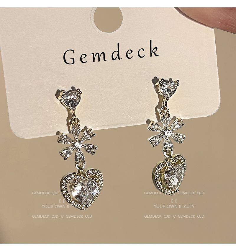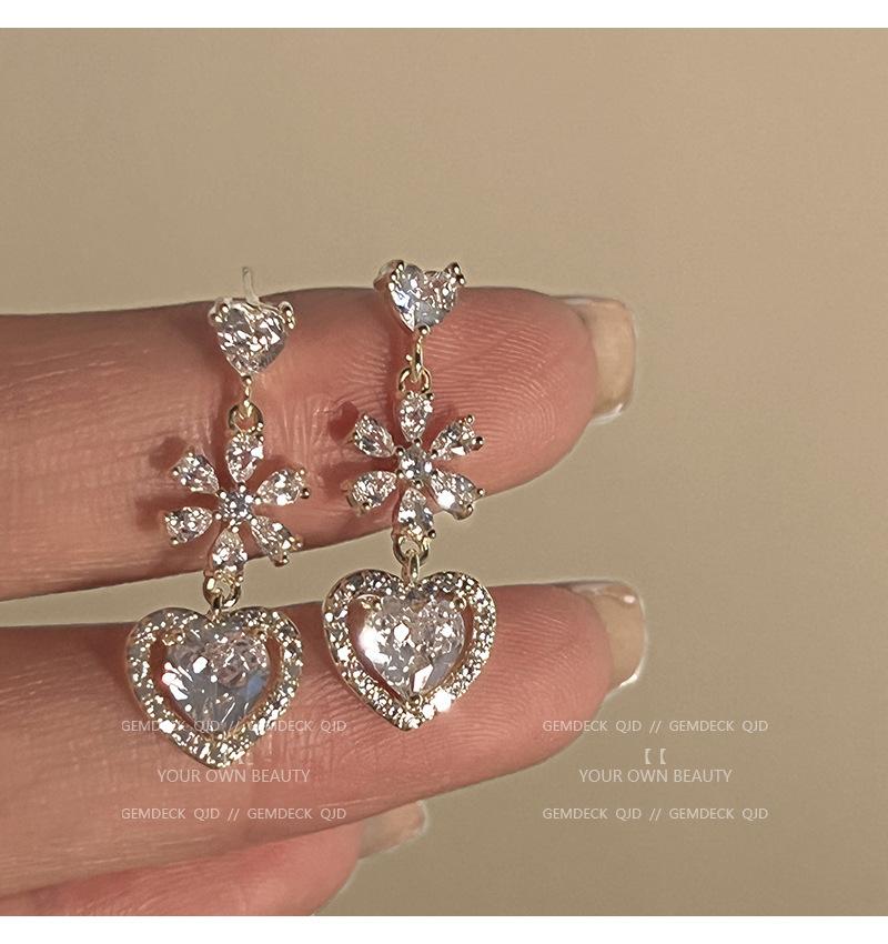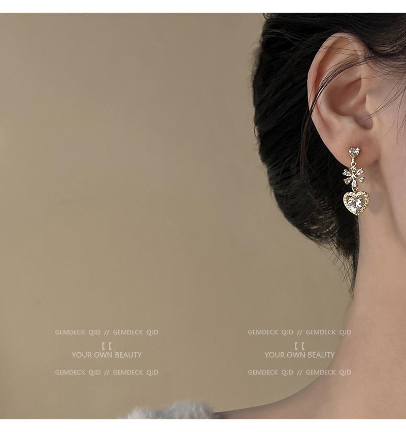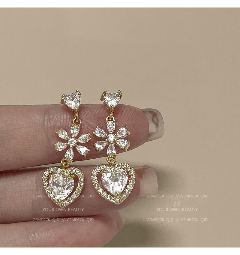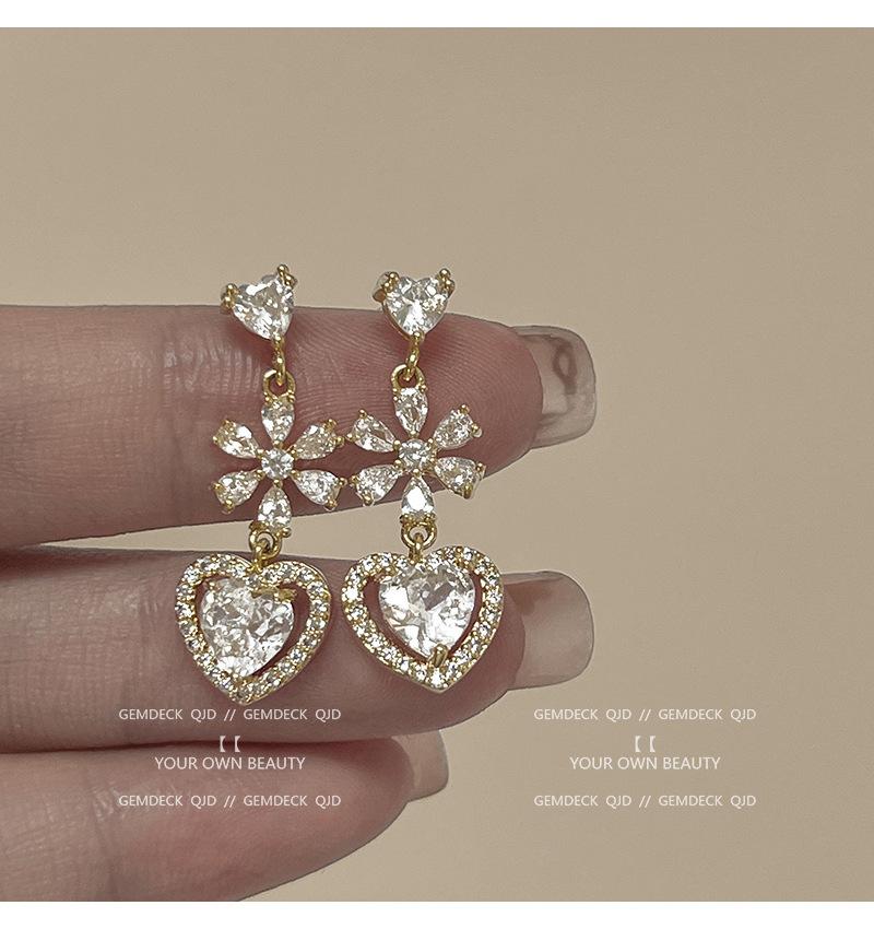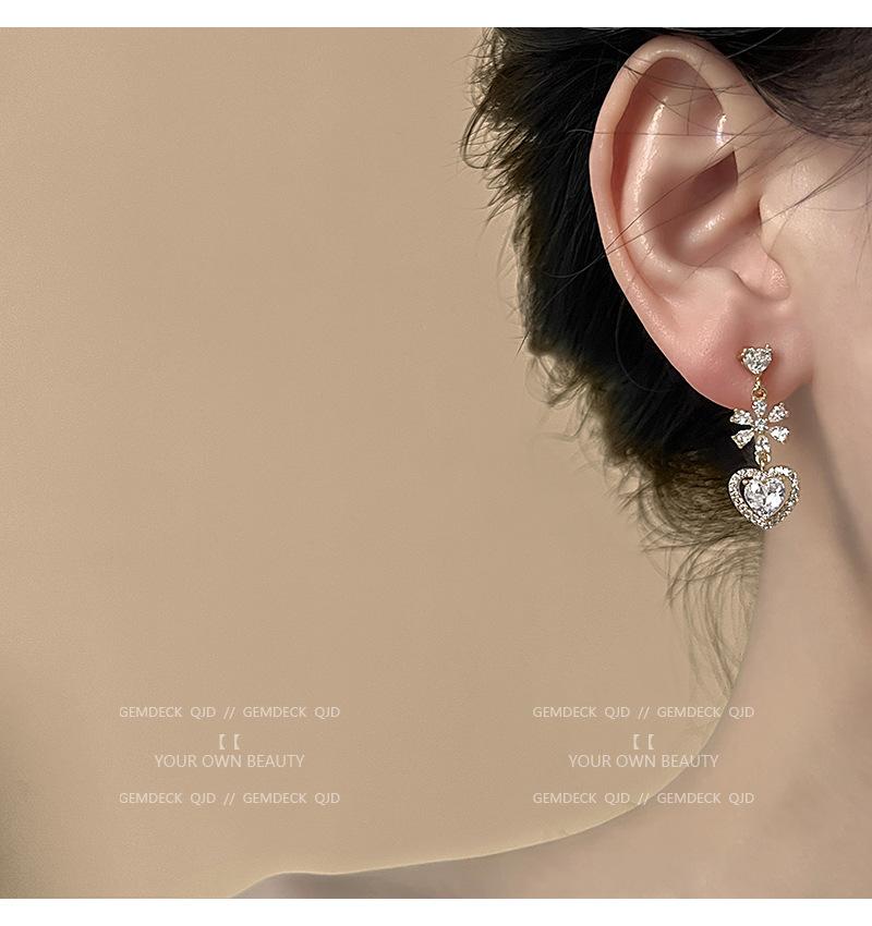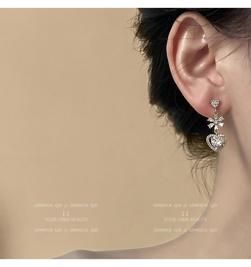 Brincos de amor de temperamento suave francês para mulheres super flash zircão clipe de orelha luz luxo nicho design brincos de alta qualidade