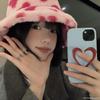 Lindo chapéu de pescador de pelúcia rosa feminino outono e inverno chapéu de balde fofo estilo japonês chapéu quente com circunferência de cabeça grande